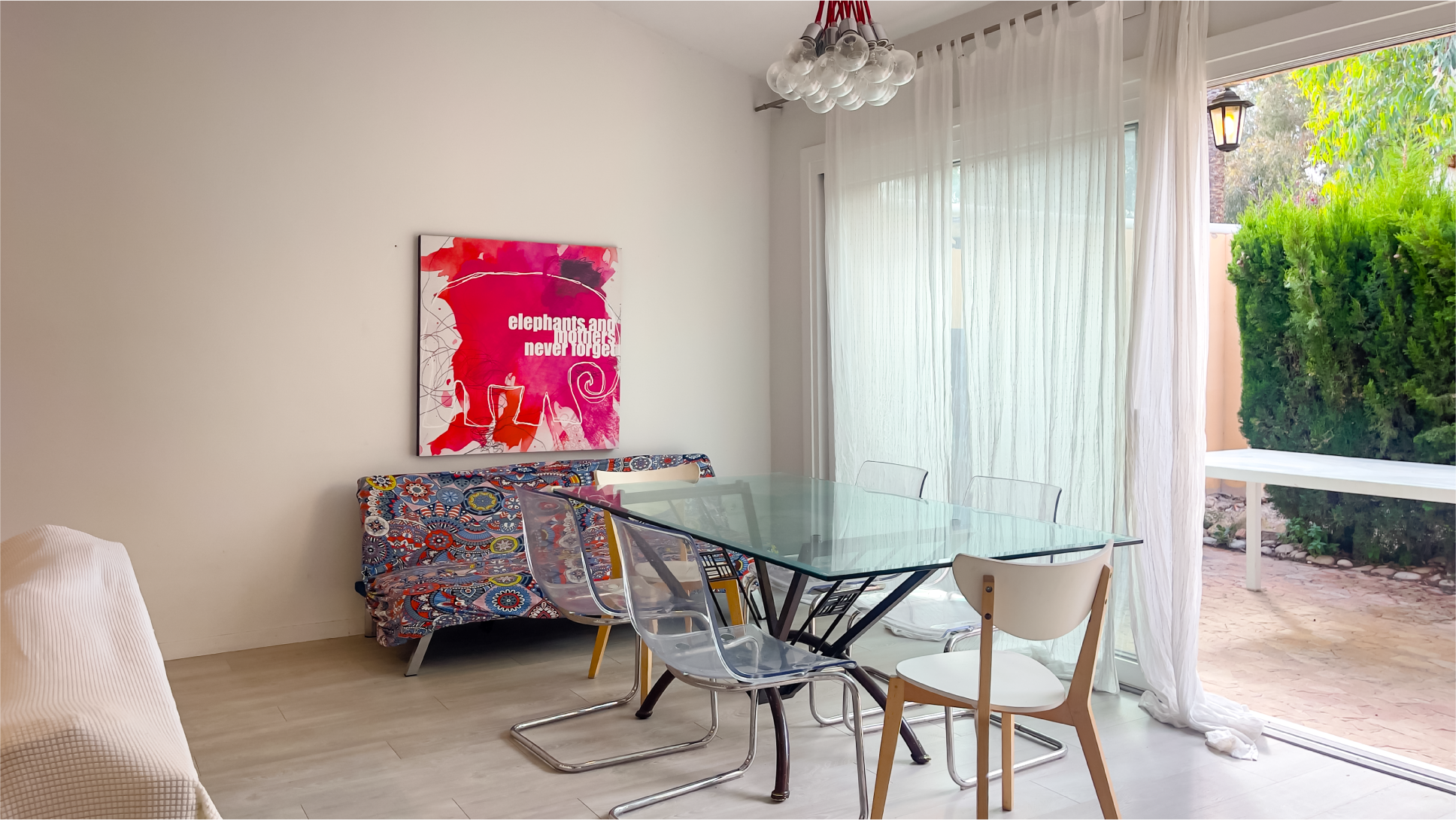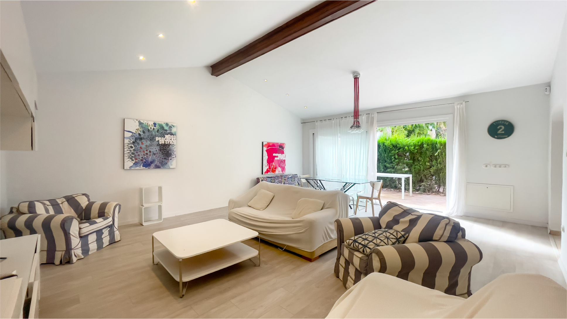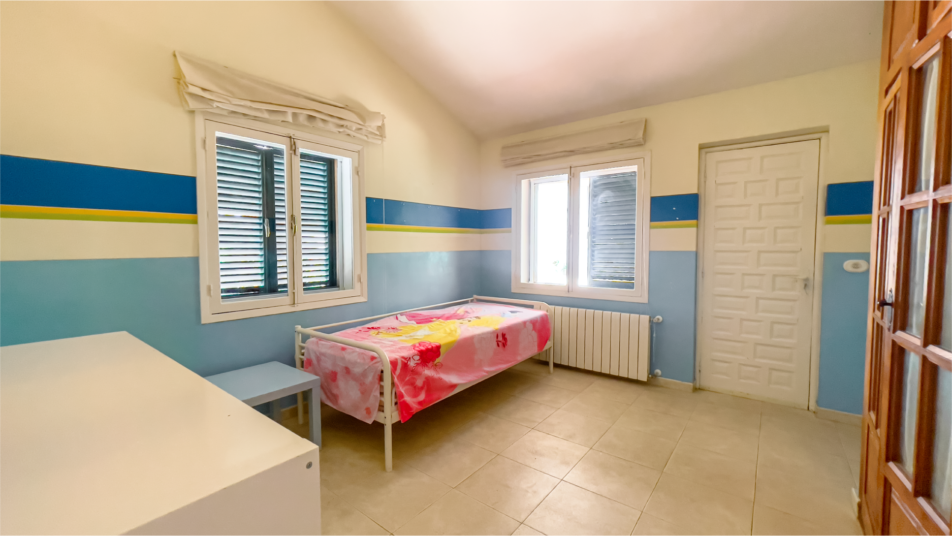 Inside, the space is filled with natural light. The spacious living room flows seamlessly into the outdoor area, while the fully equipped kitchen provides everything needed for preparing and enjoying meals. The bedrooms are quiet and spacious, with one offering a lovely view. The children’s room is decorated in cheerful colors, creating a bright and functional space.