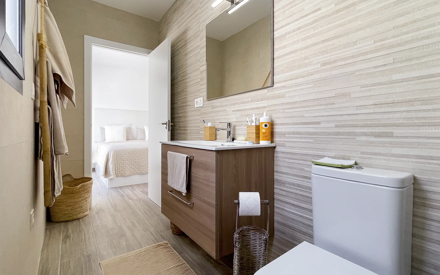 The apartment has two cozy bedrooms. The main bedroom has direct access to the terrace, providing an additional sense of spaciousness and privacy. The bathrooms feature a current design, with quality materials and well-thought-out ergonomics.
