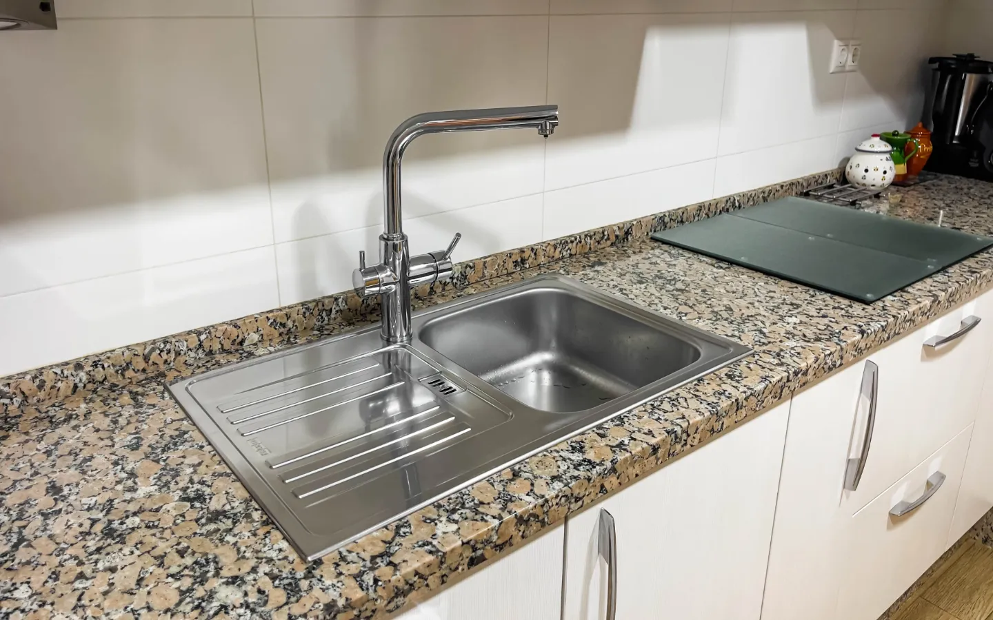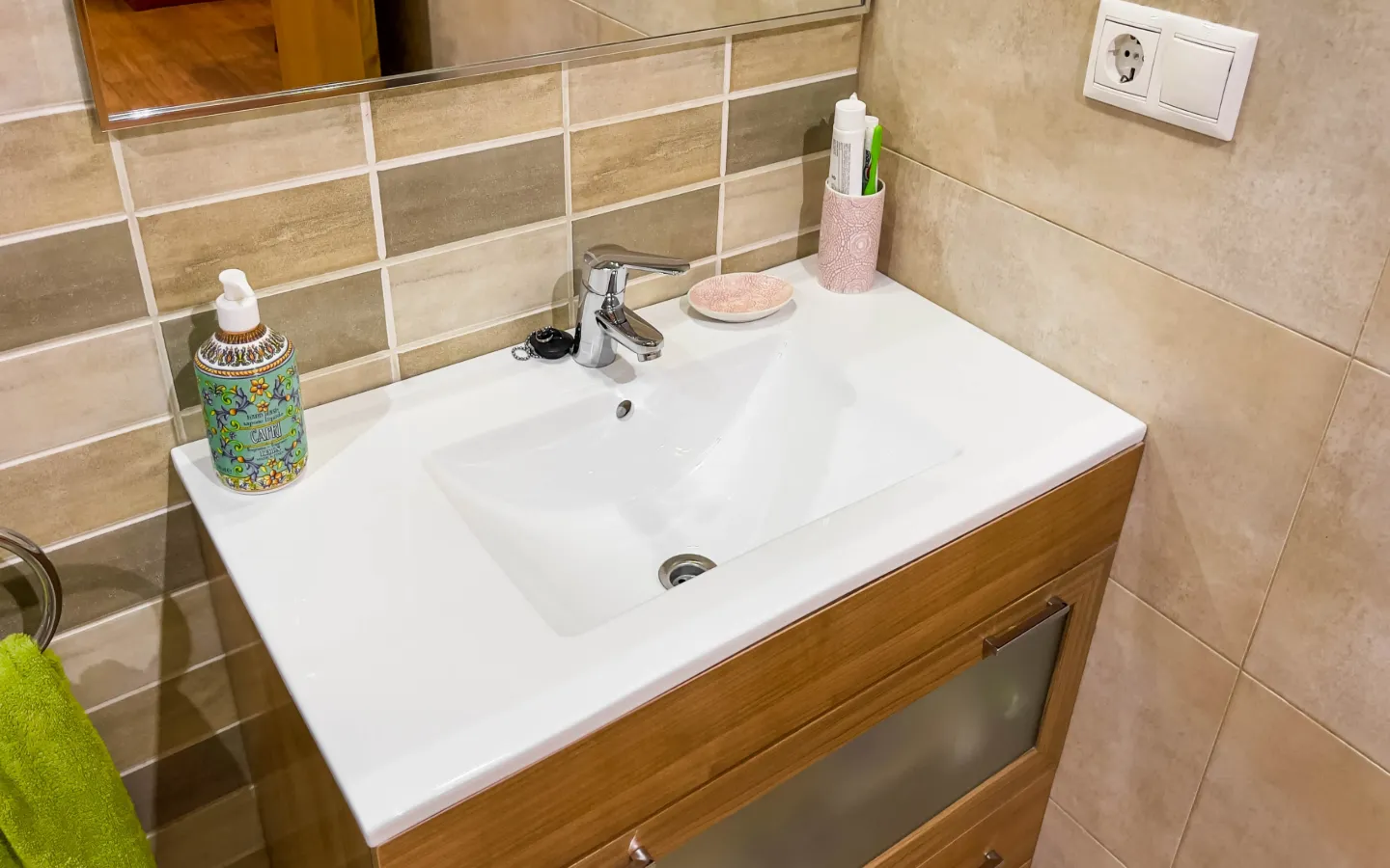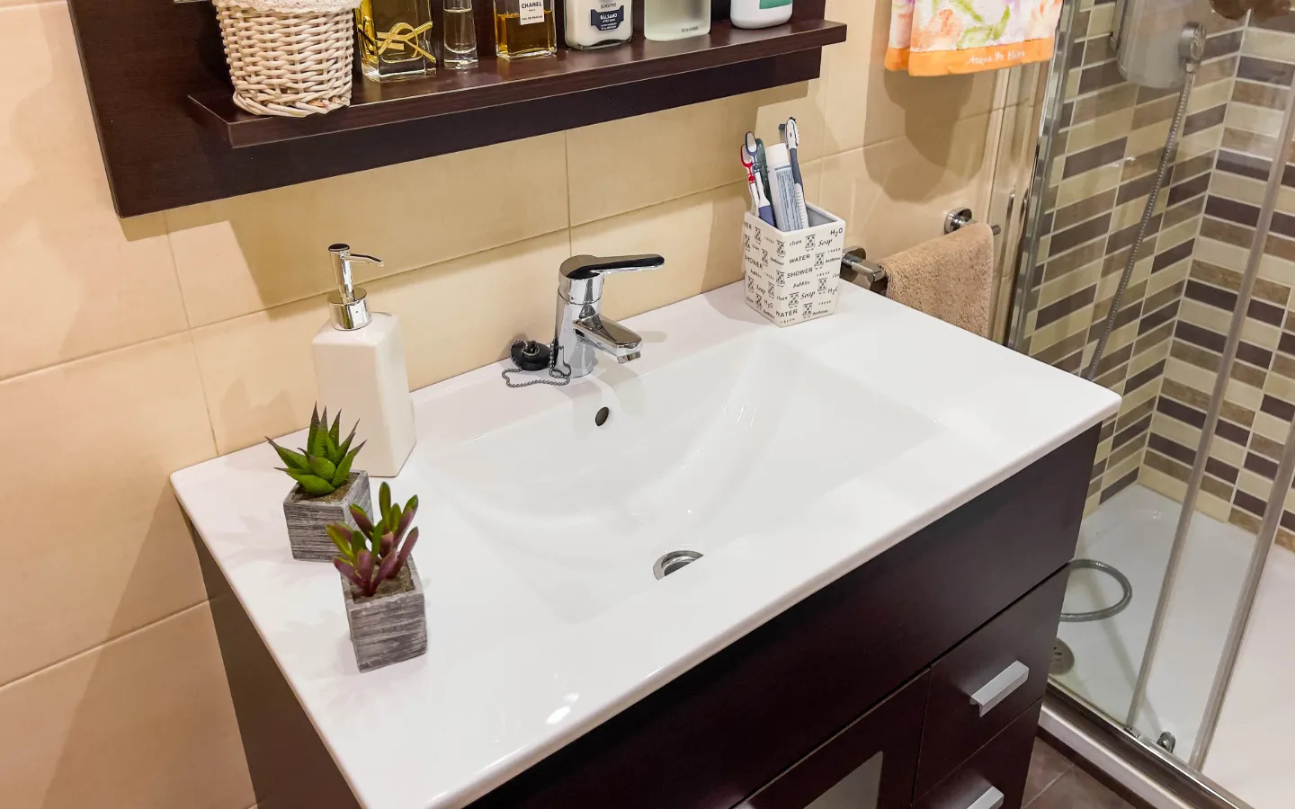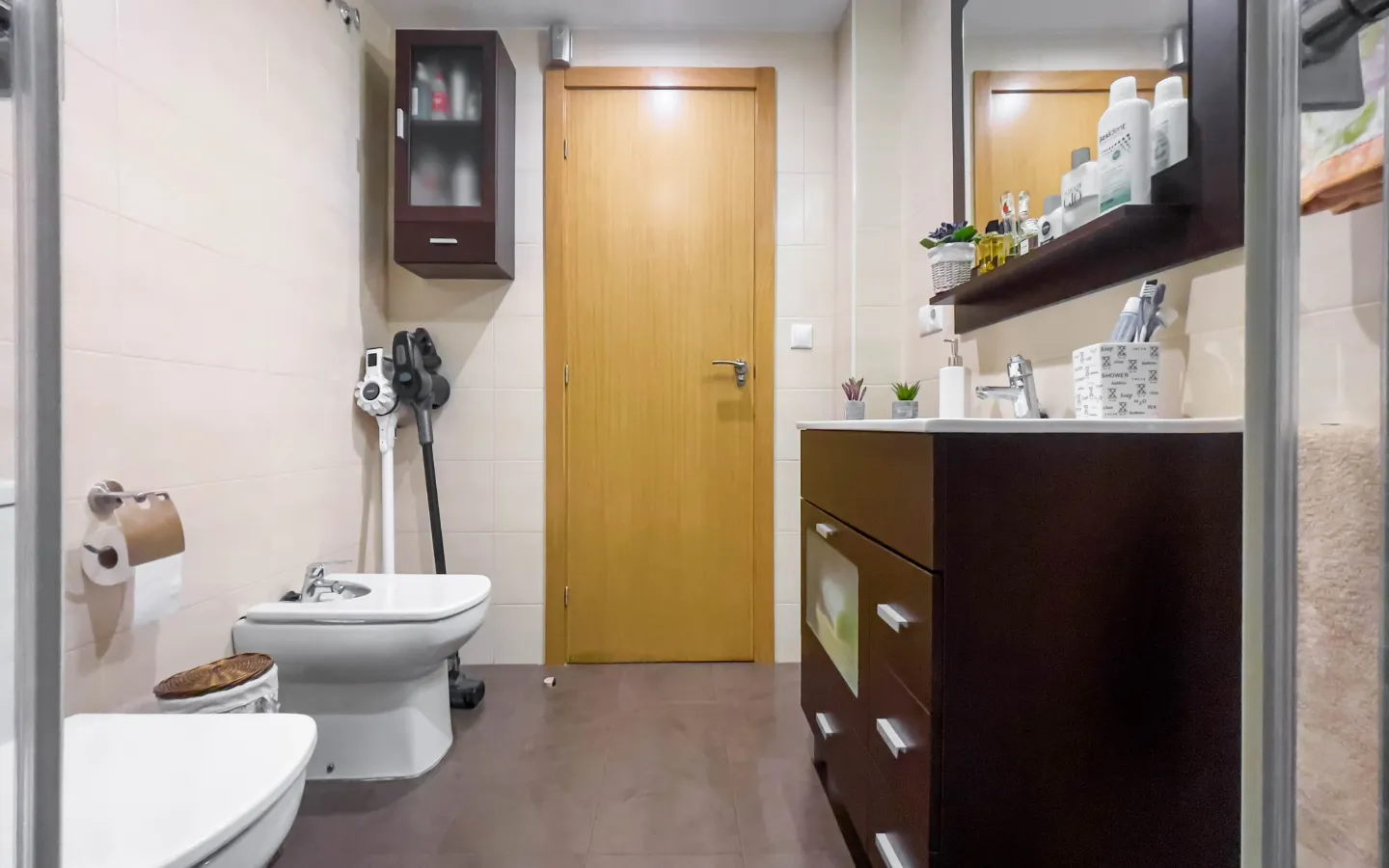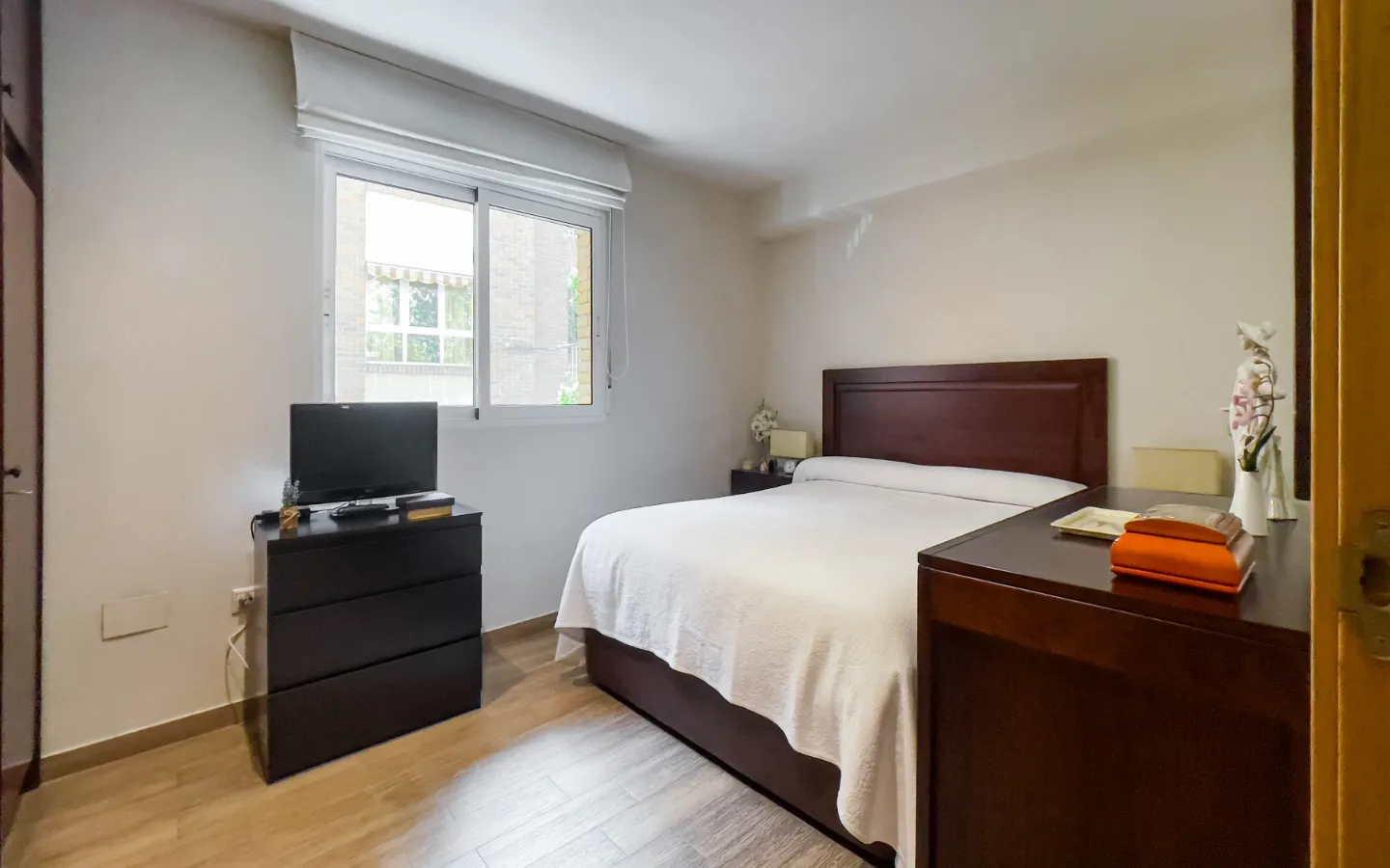 Mieszkanie składa się z trzech sypialni. Główna sypialnia ma podwójne łóżko i pojemne szafy. Dwa pozostałe pokoje mogą pełnić funkcję pokoi gościnnych, dziecięcych lub domowego biura. Do dyspozycji są dwie stylowe łazienki, w tym jedna z prysznicem typu walk-in. Wszystkie pomieszczenia są klimatyzowane, a system odwróconej osmozy zapewnia czystą wodę pitną prosto z kranu.