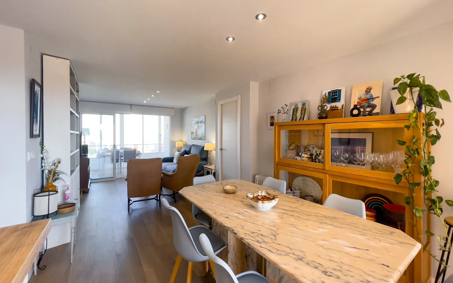 To eleganckie mieszkanie w El Campello oddaje esencję współczesnego śródziemnomorskiego stylu: przestronne wnętrza, naturalne światło i nieustanne poczucie harmonii oraz spokoju.