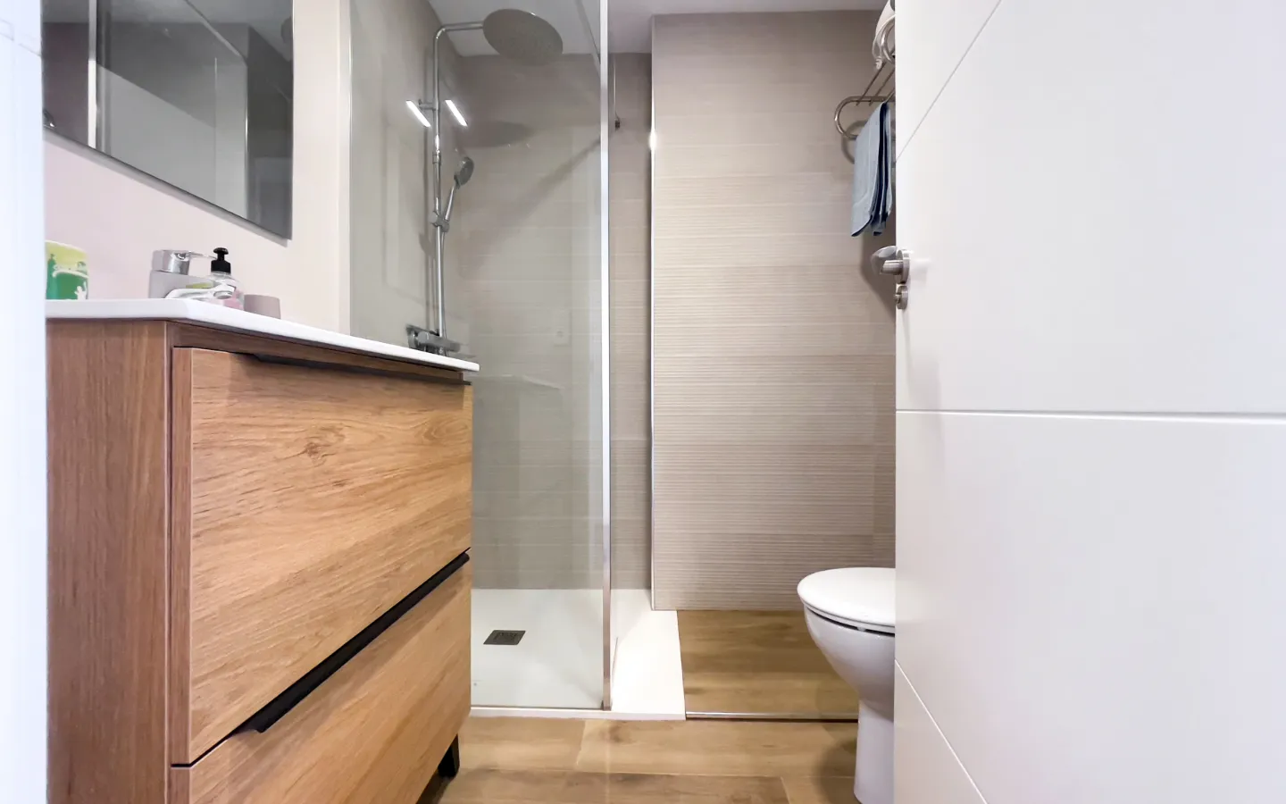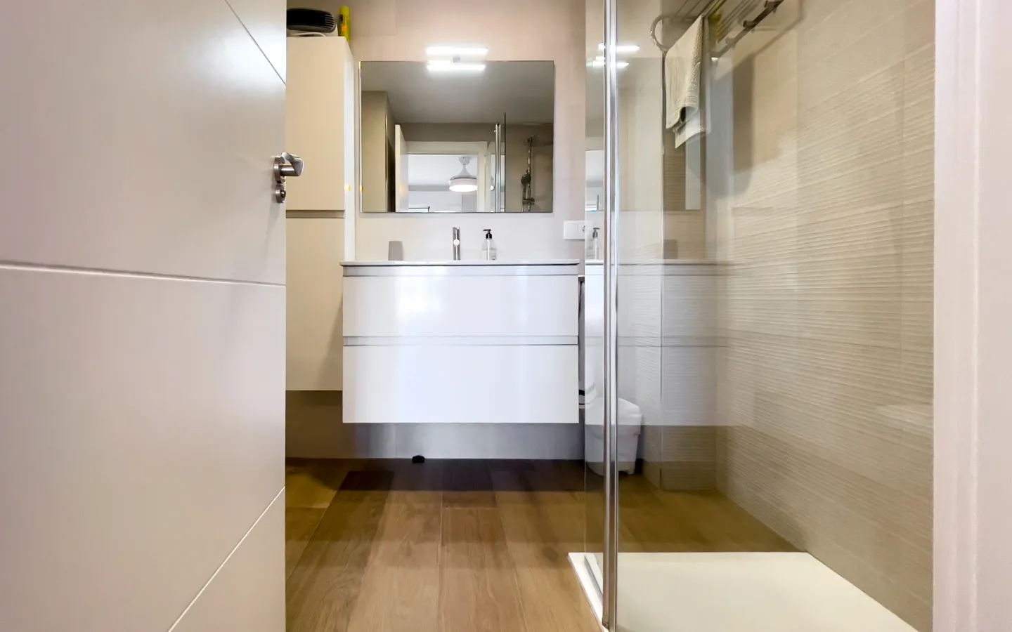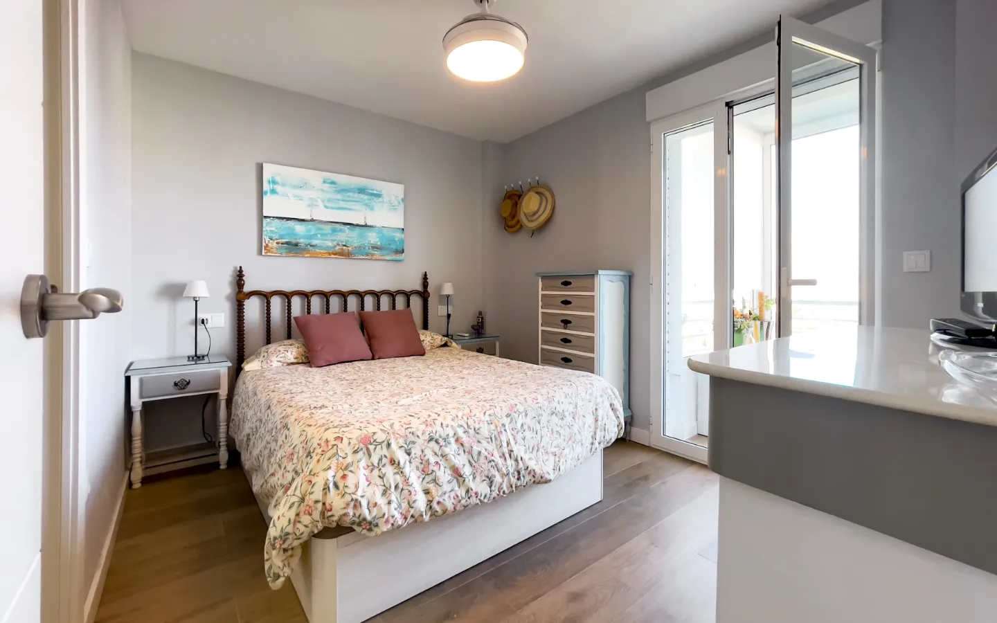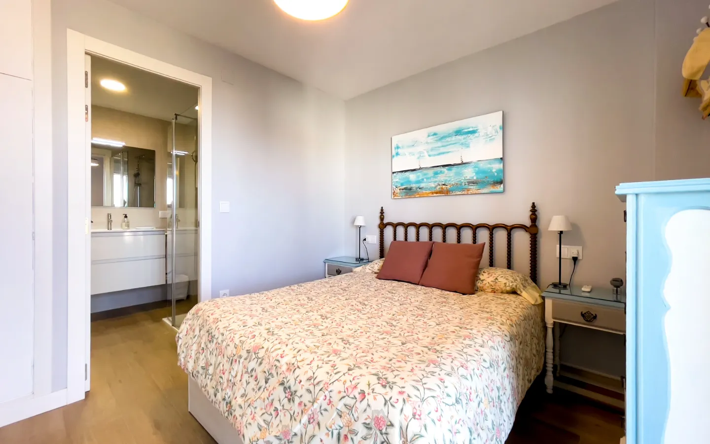 Mieszkanie składa się z trzech sypialni, z których każda została gustownie urządzona i zapewnia spokój oraz prywatność. Główna sypialnia z prywatną łazienką i bezpośrednim wyjściem na taras przypomina pokój w butikowym hotelu. Druga łazienka utrzymana jest w tym samym stylu – elegancka, funkcjonalna i pełna światła.