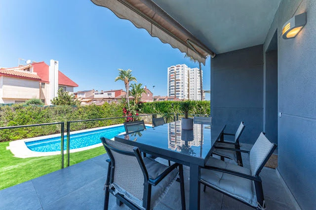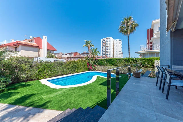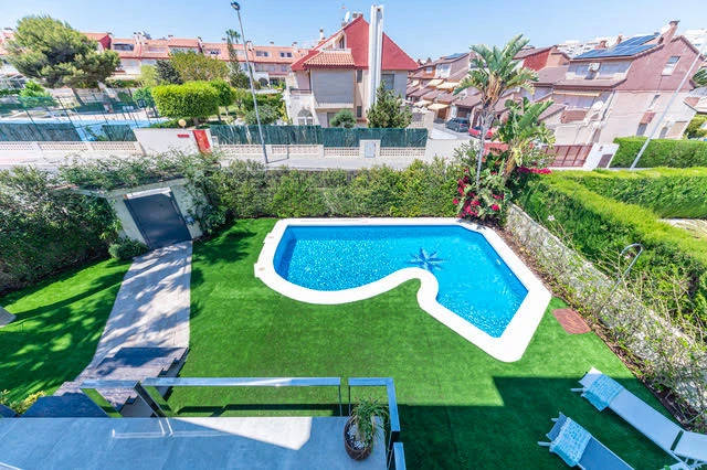 Los espacios exteriores de la casa son amplios, discretos y muy cómodos. En la entrada principal hay una amplia zona al aire libre, junto a la cual hay un Jardín con piscina y zona de Barbacoa.