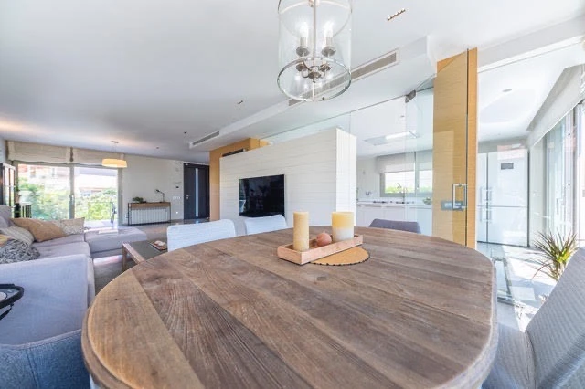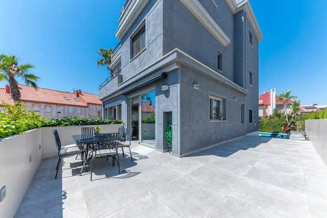 En la planta principal hay un amplio salón-comedor, una cocina moderna de Porcelanosa con electrodomésticos de alta calidad y acceso a la Terraza trasera. También hay un baño de invitados.