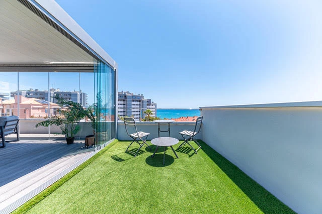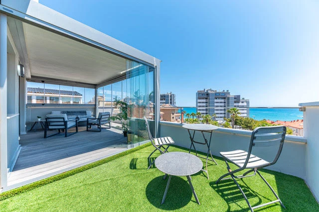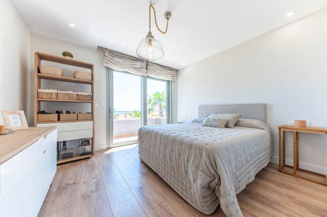 En la planta superior hay un tercer dormitorio de dimensiones considerables con acceso directo a una gran Terraza con vistas al mar Mediterráneo. El dormitorio incluye un amplio baño y un Vestidor.