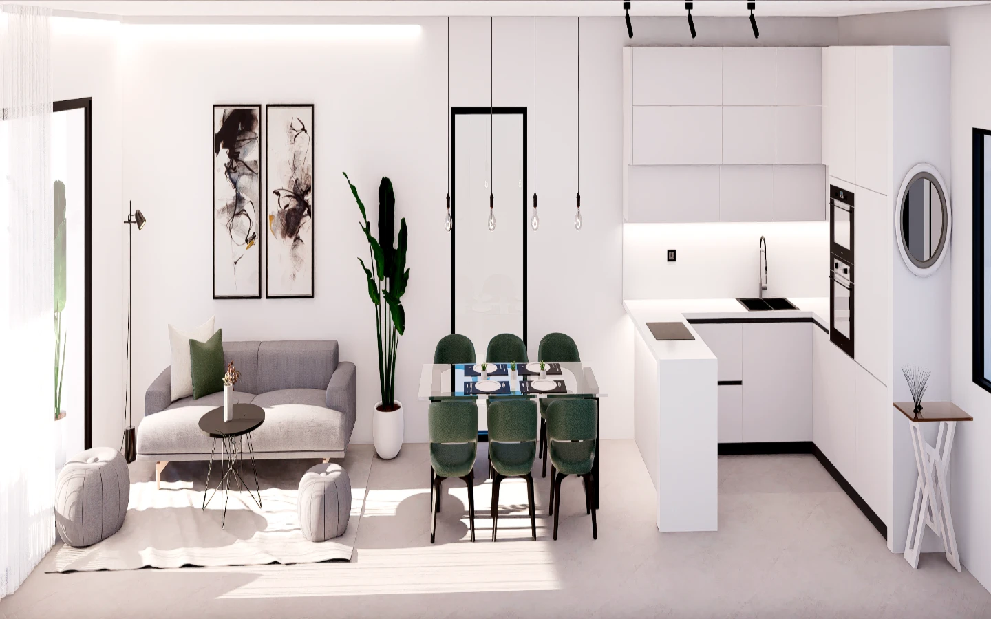 Cada villa aprovecha al máximo la luz natural gracias a su orientación sur. Con terrazas privadas y jardines, los interiores se caracterizan por un concepto de espacios abiertos entre la cocina y el salón, creando una atmósfera moderna y acogedora.