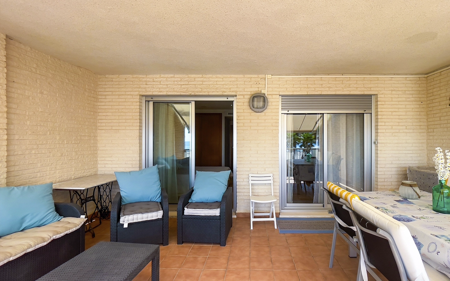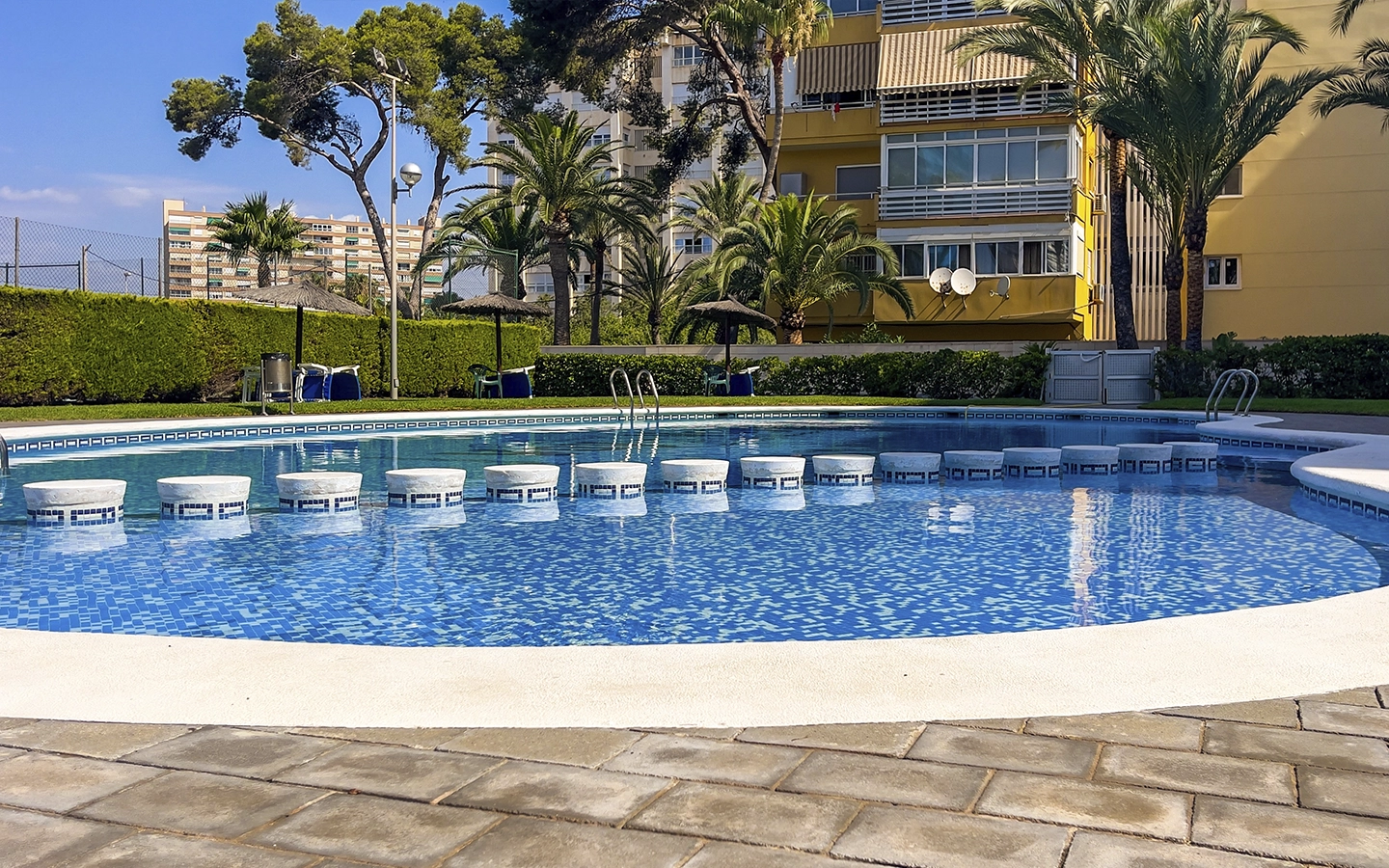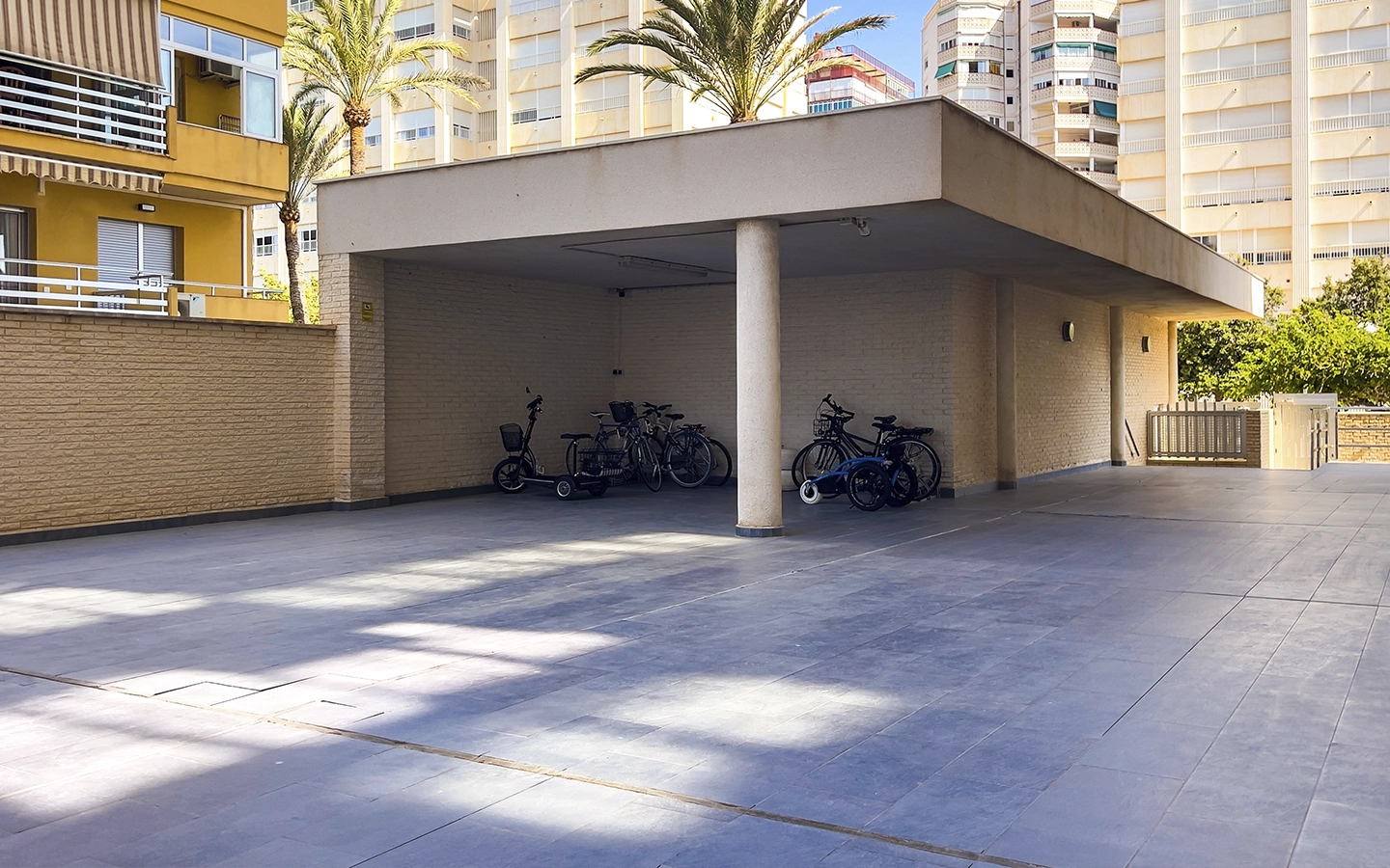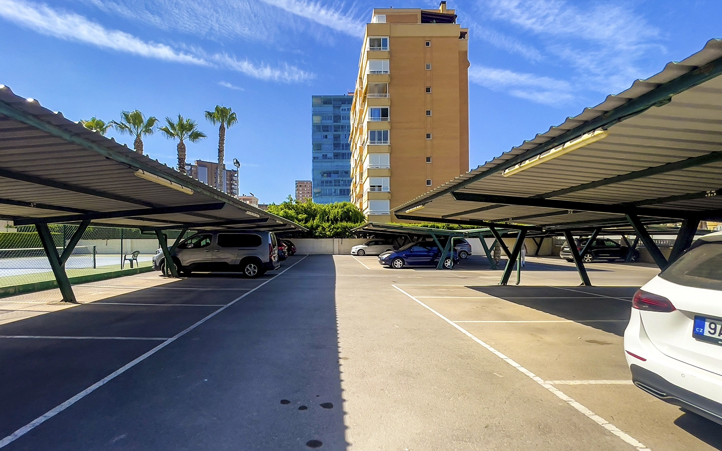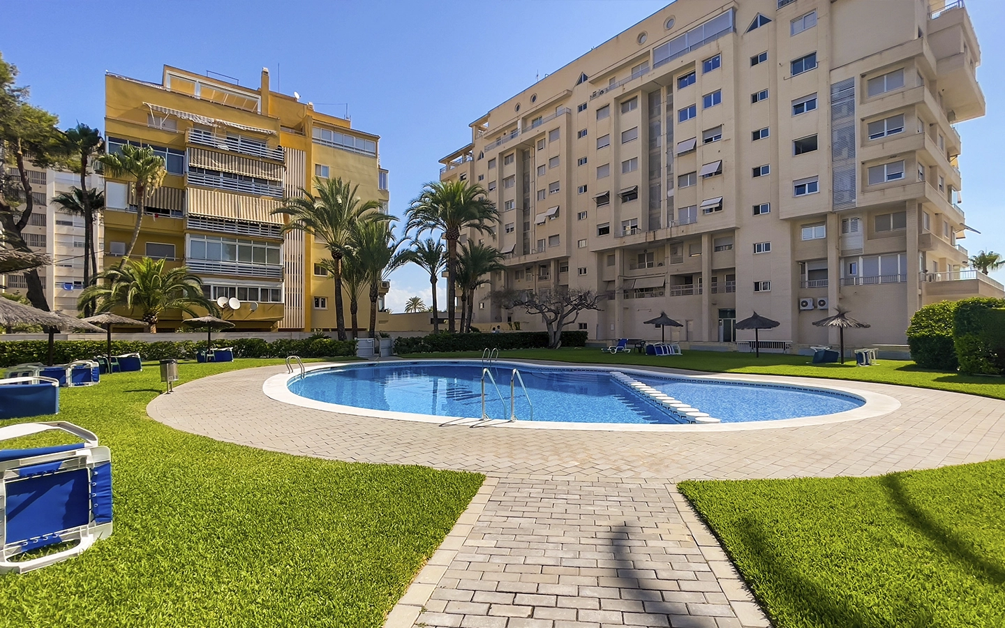 El complejo, cerrado y muy bien cuidado, cuenta con piscinas comunitarias, zonas ajardinadas y acceso directo a la playa a tan solo 15 metros. Se incluye plaza de aparcamiento cubierta.