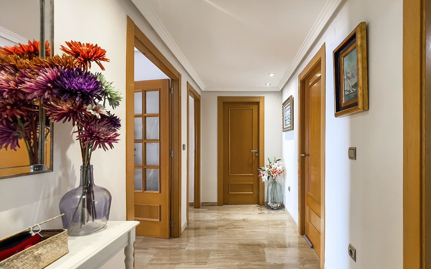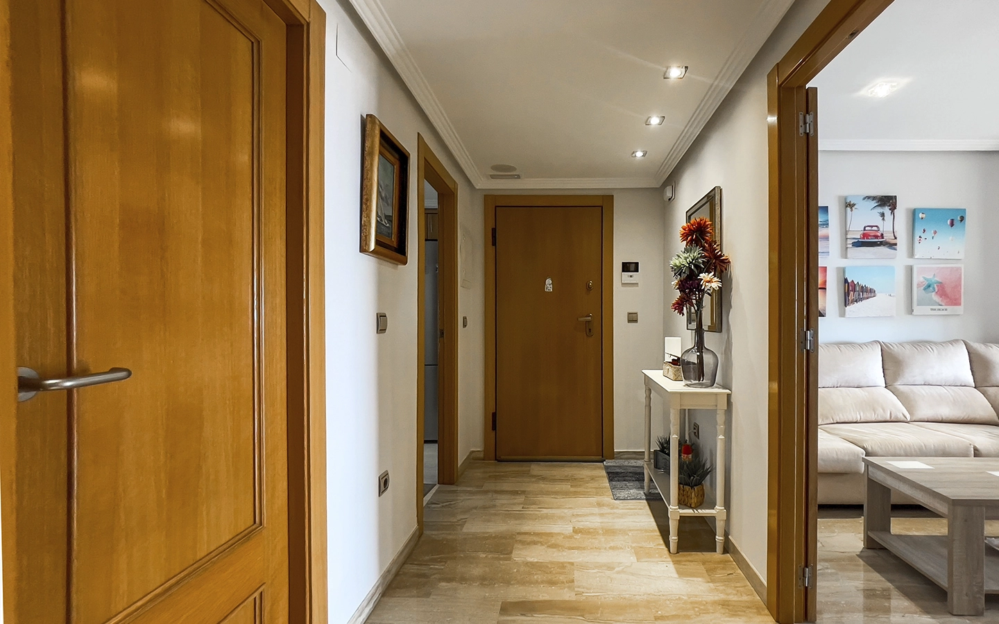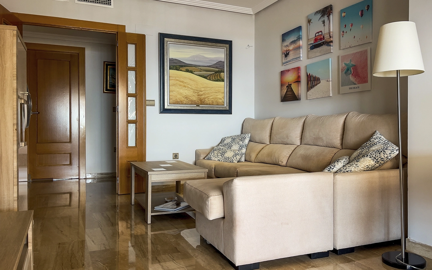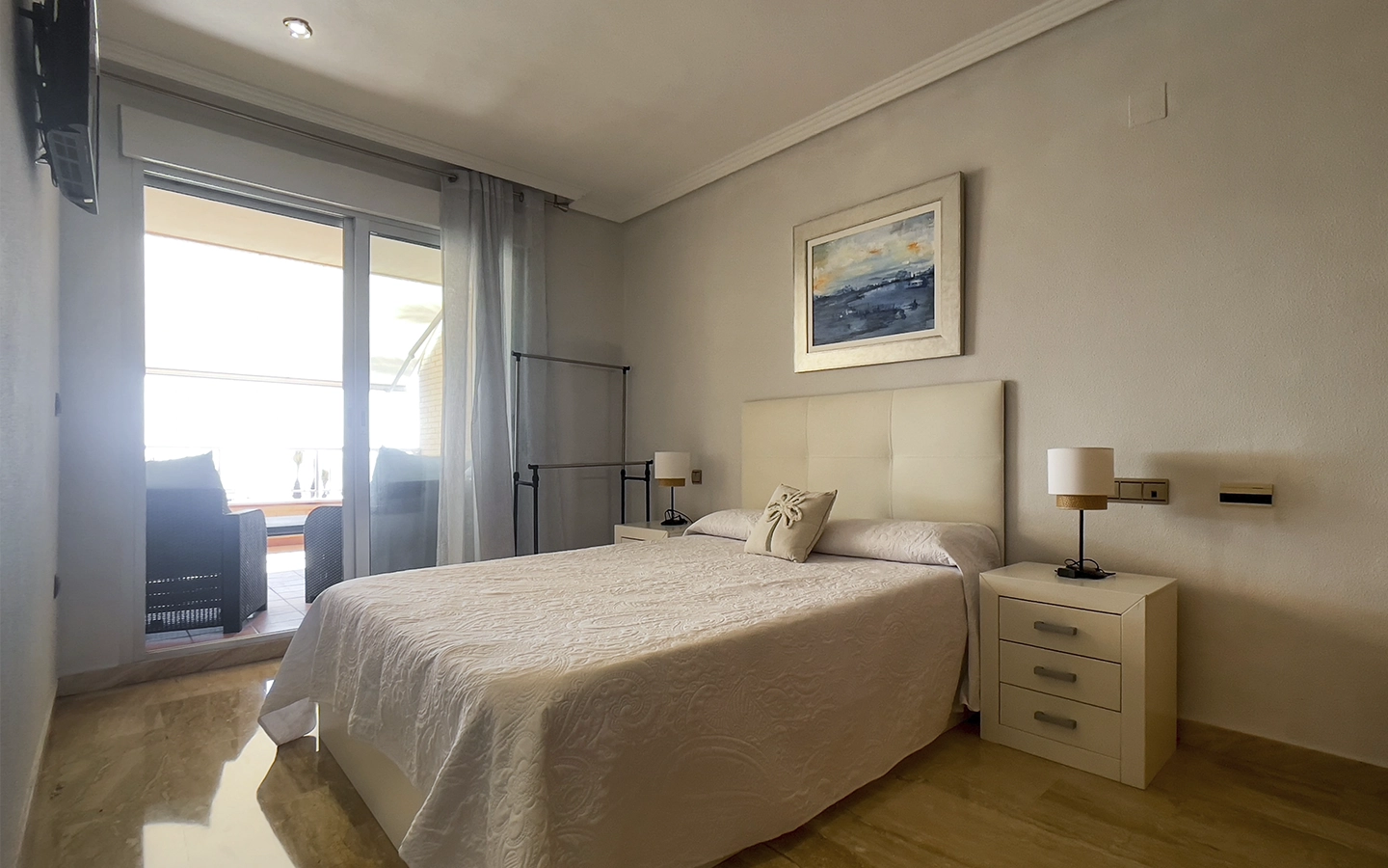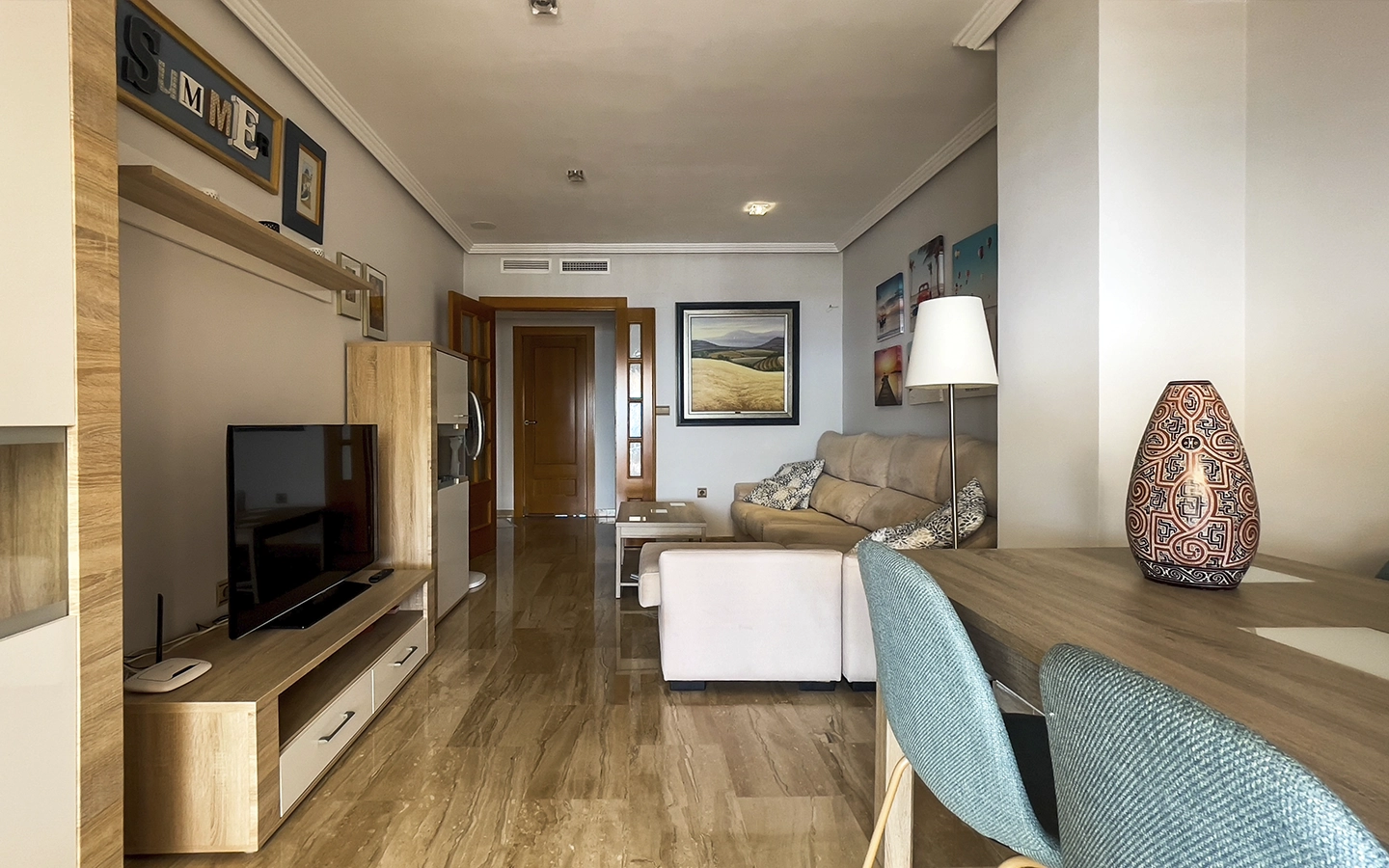 En el exclusivo complejo residencial Voy Voy, en la Avenida de Niza, se alquila este elegante apartamento que combina tranquilidad, estilo y una ubicación privilegiada, a escasos pasos de la arena dorada de Playa de San Juan. Solo una calle tranquila separa la vivienda del mar Mediterráneo.