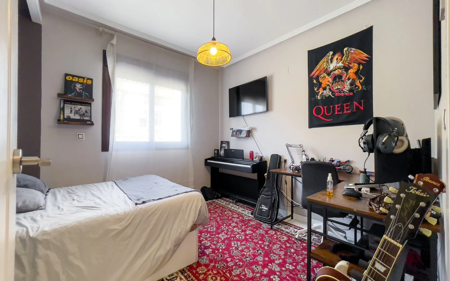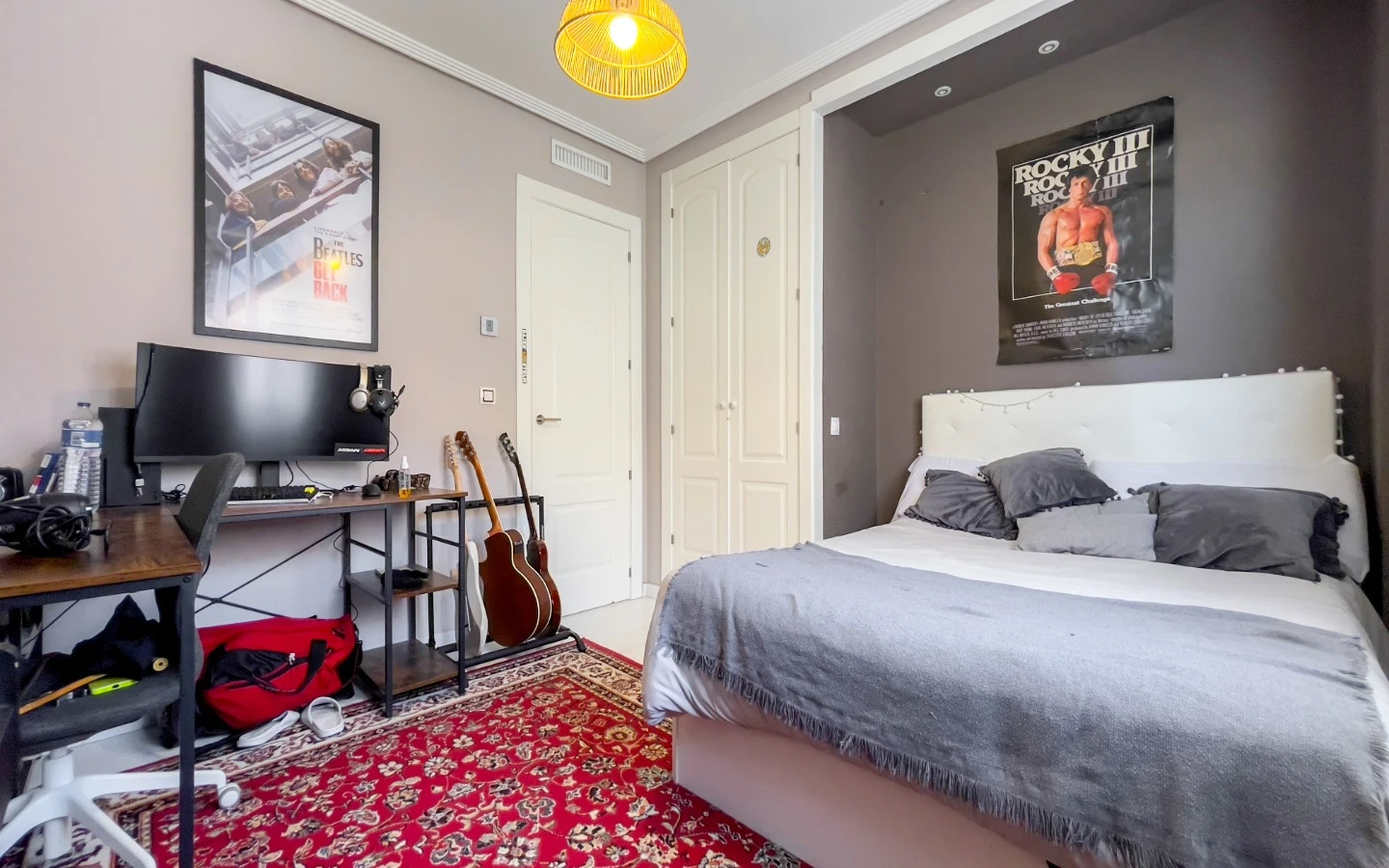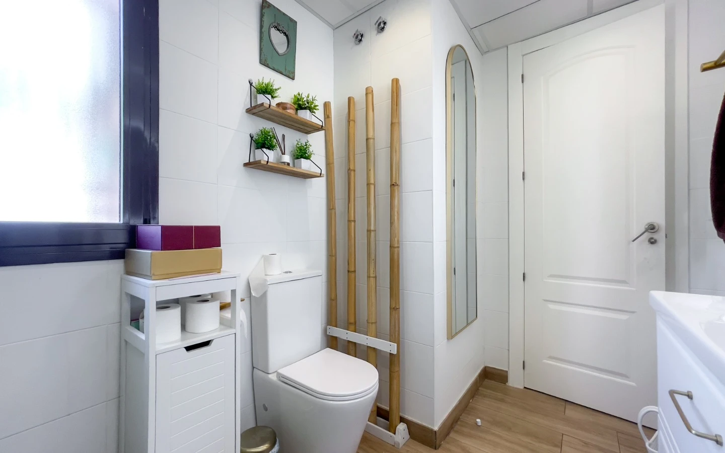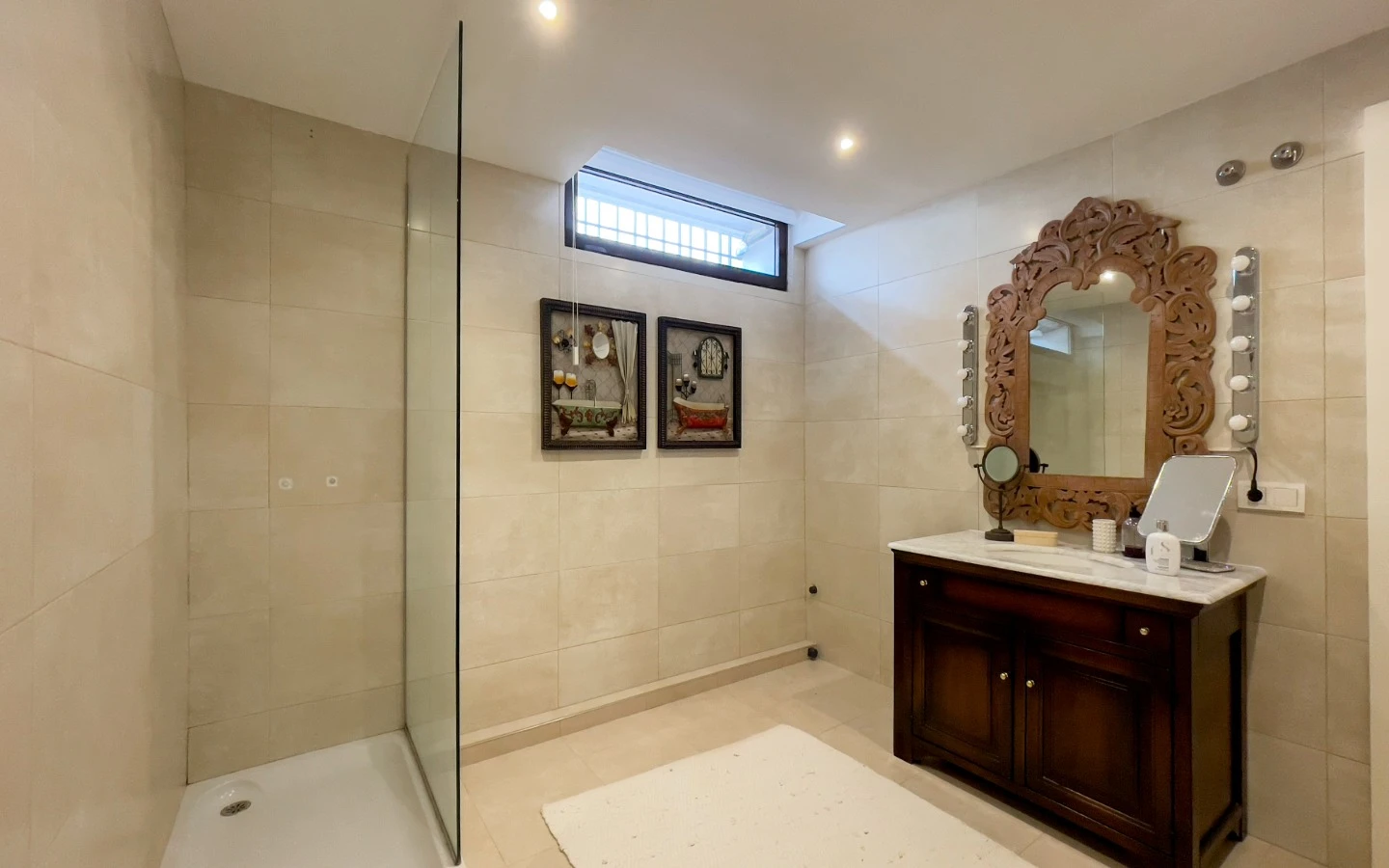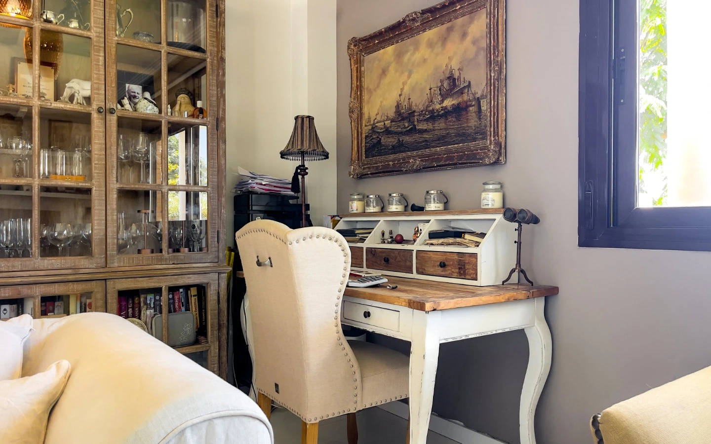 En el interior, la vivienda se presenta como una colección de espacios curados, llenos de luz, texturas y referencias de diseño global. Desde puertas antiguas y consolas artesanales hasta arte tribal e iluminación escultórica, la villa fusiona materiales naturales con un estilo personal. El salón-comedor de planta abierta se conecta con una cocina totalmente equipada con isla central, perfecta tanto para la vida diaria como para reuniones sociales. Cada dormitorio tiene su carácter propio: desde la serena suite principal hasta un dormitorio infantil lleno de color y un vestidor de estilo boutique. La planta inferior amplía las posibilidades con más dormitorios, un salón, baño, espacio creativo o de bienestar y acceso directo al jardín.