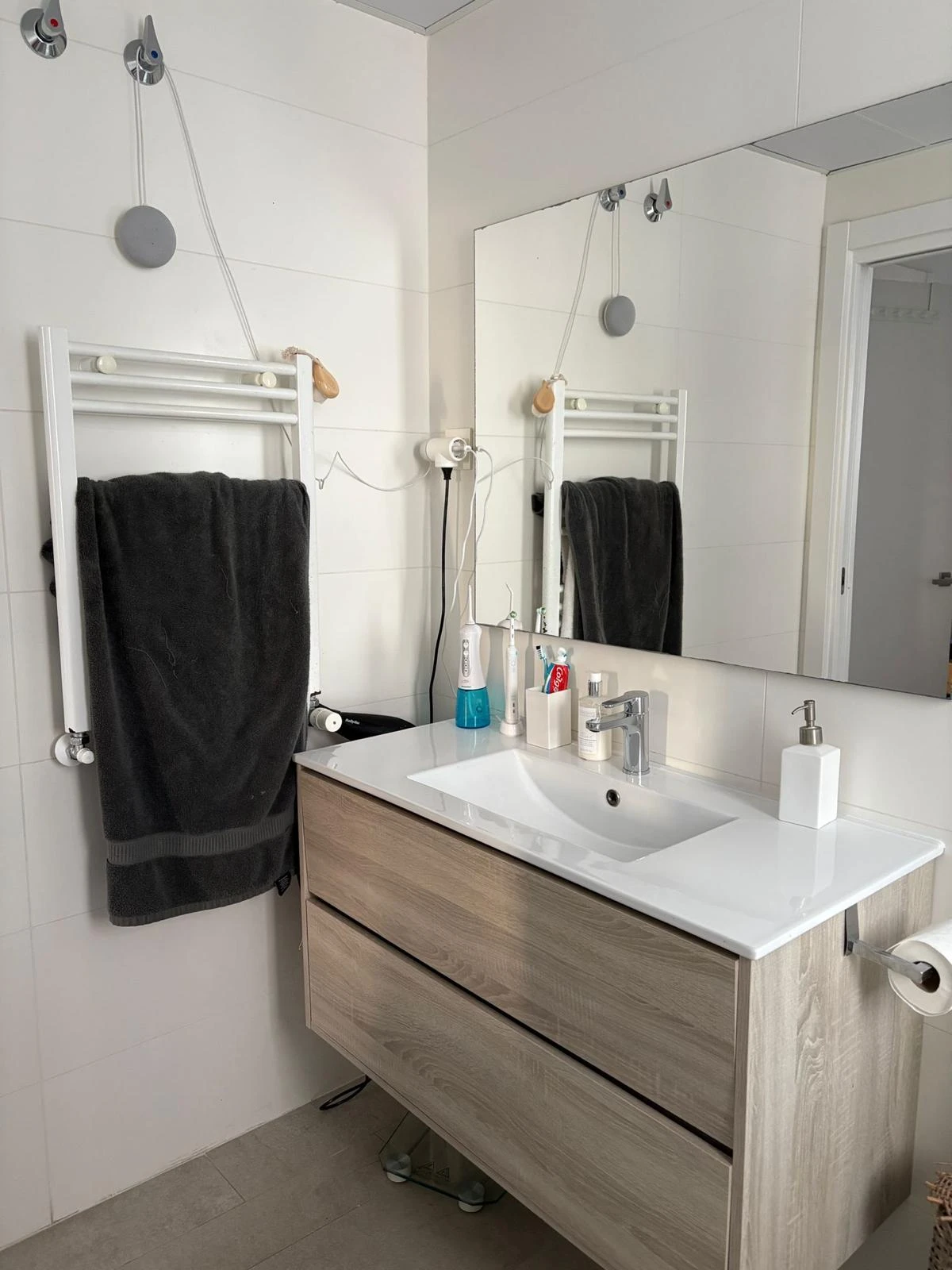 Los dos dormitorios ofrecen privacidad y un ambiente tranquilo para descansar. Las habitaciones son silenciosas y ordenadas. Los baños presentan un estilo moderno y cuidado, con materiales de buena calidad y una estética sencilla. En toda la vivienda se nota un mantenimiento atento y un estado general muy bueno.
