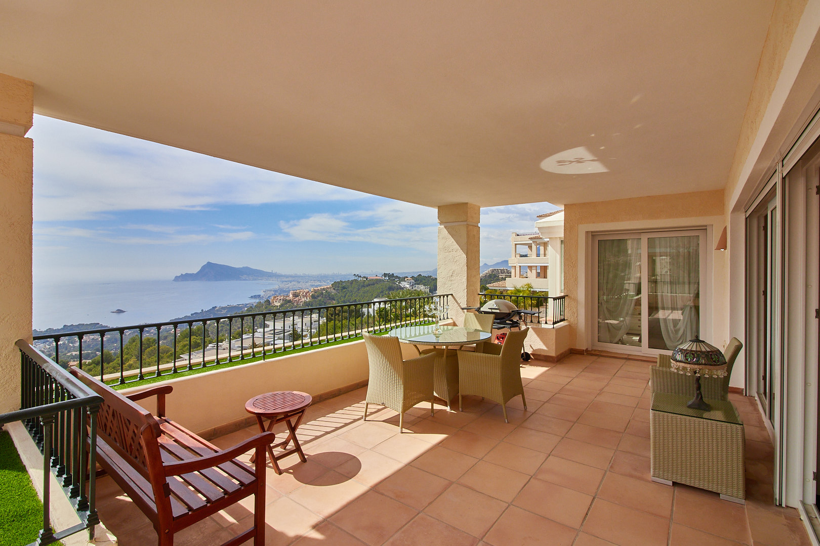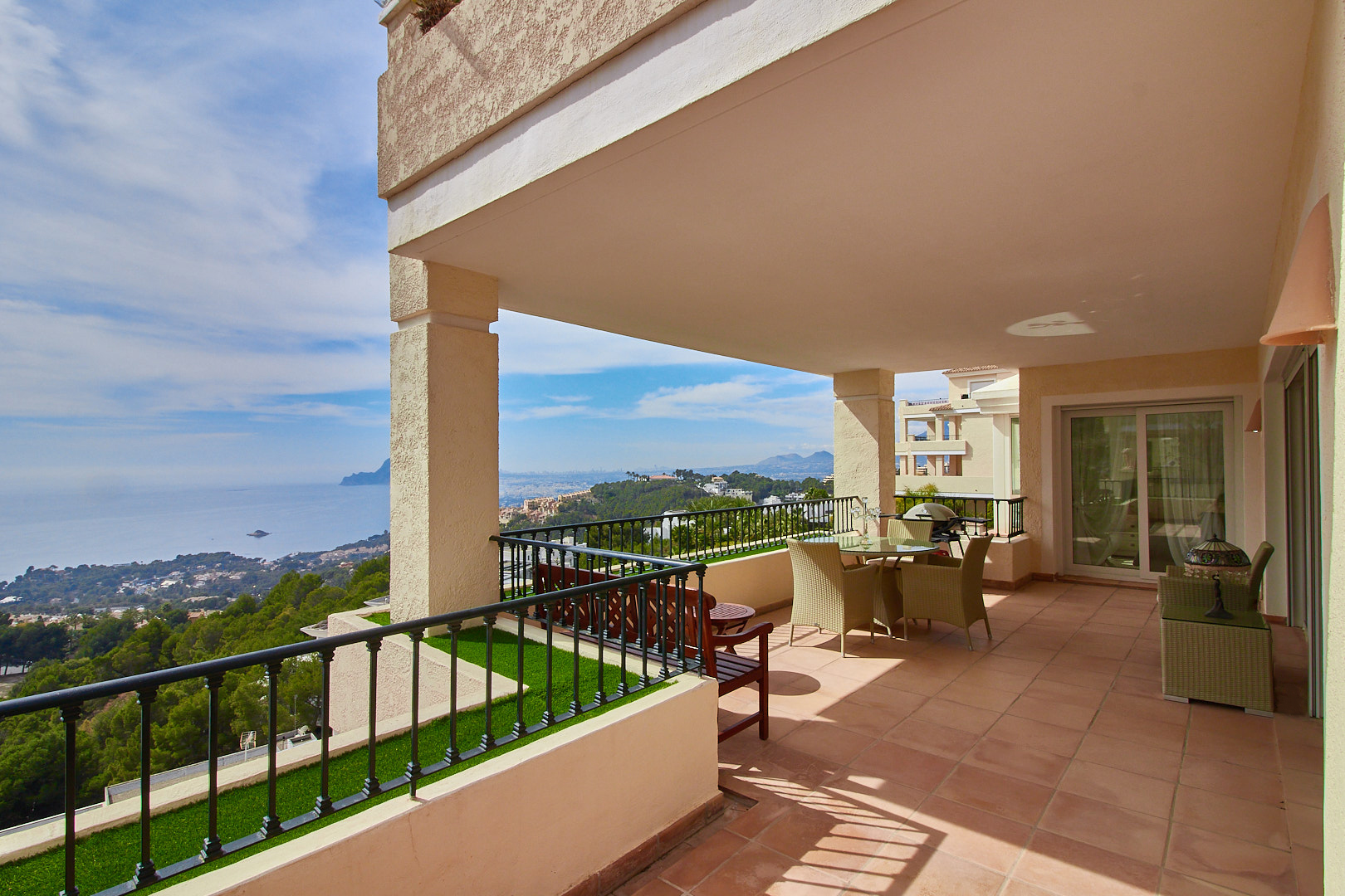 Терраса площадью 42 м² с южной ориентацией и видом на море и горы.