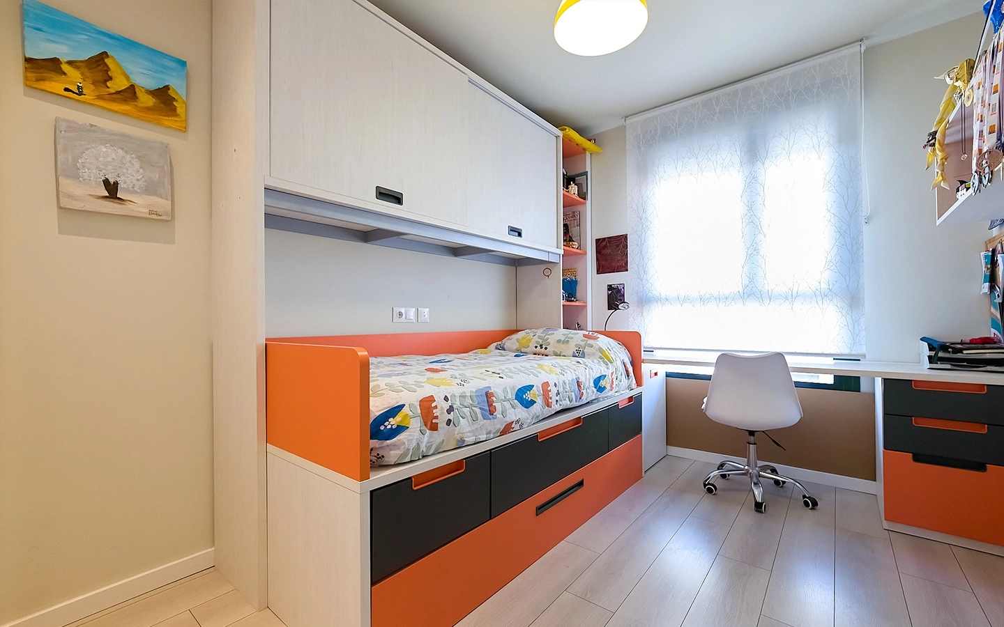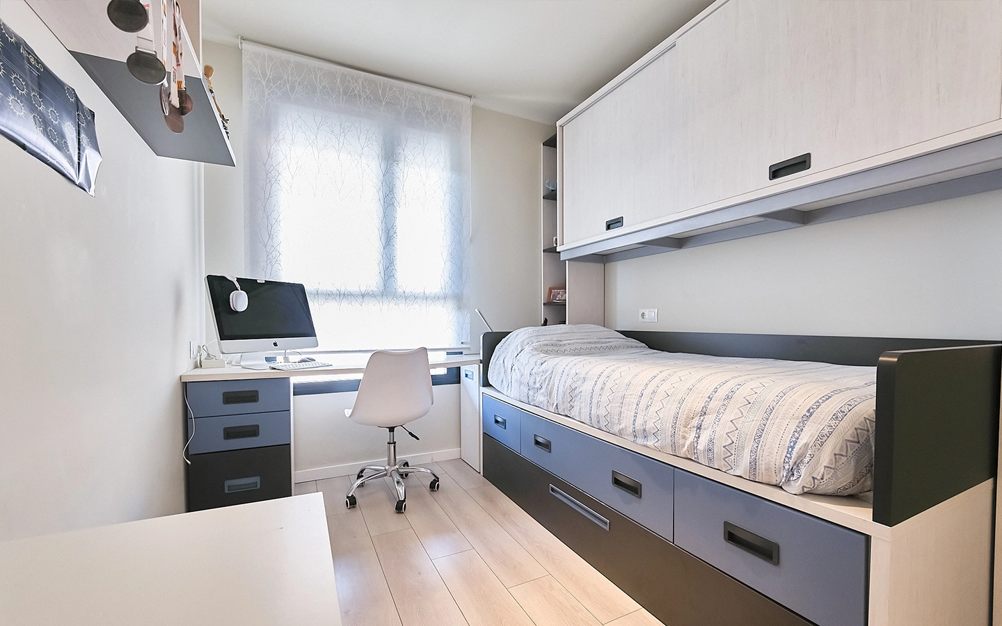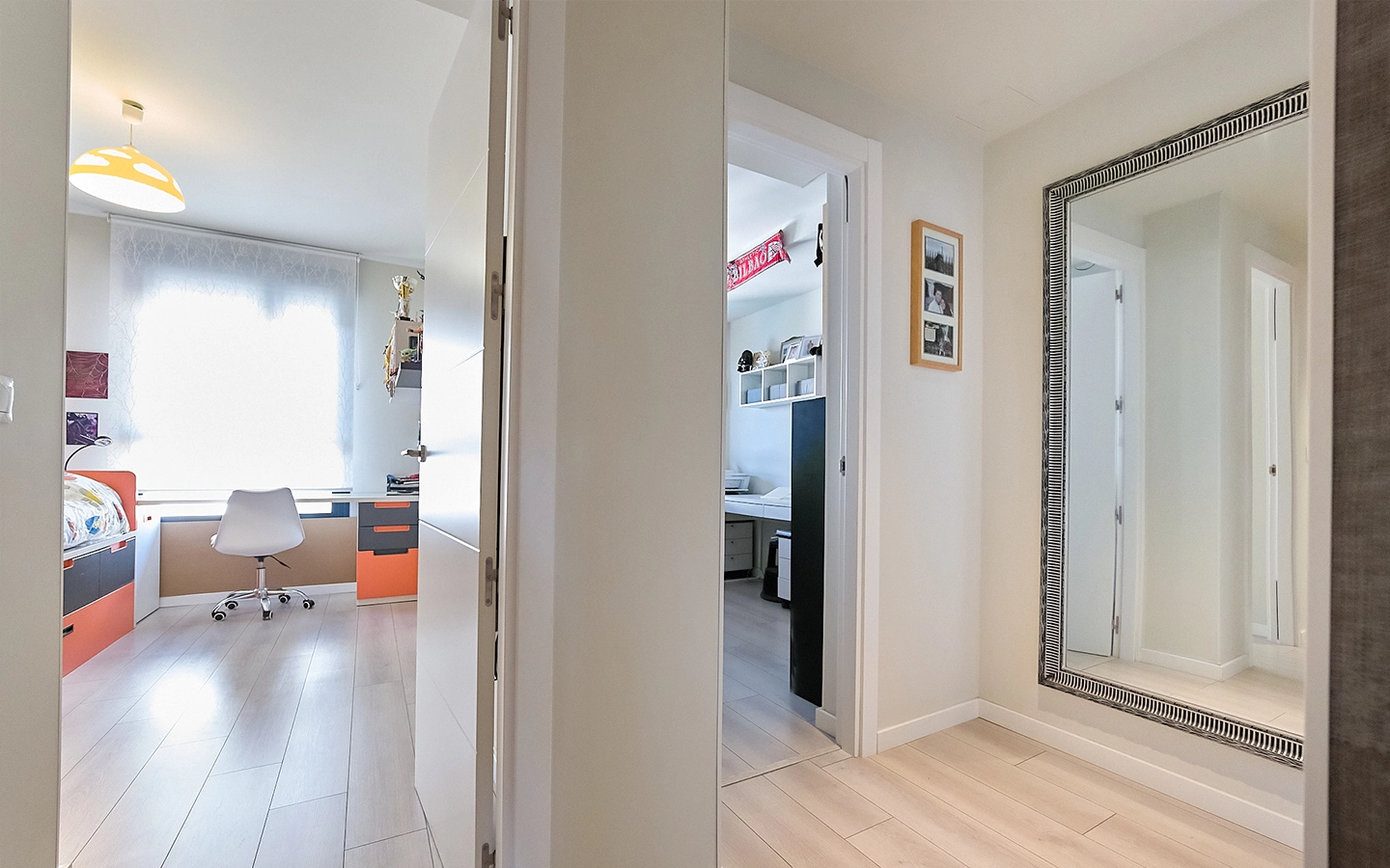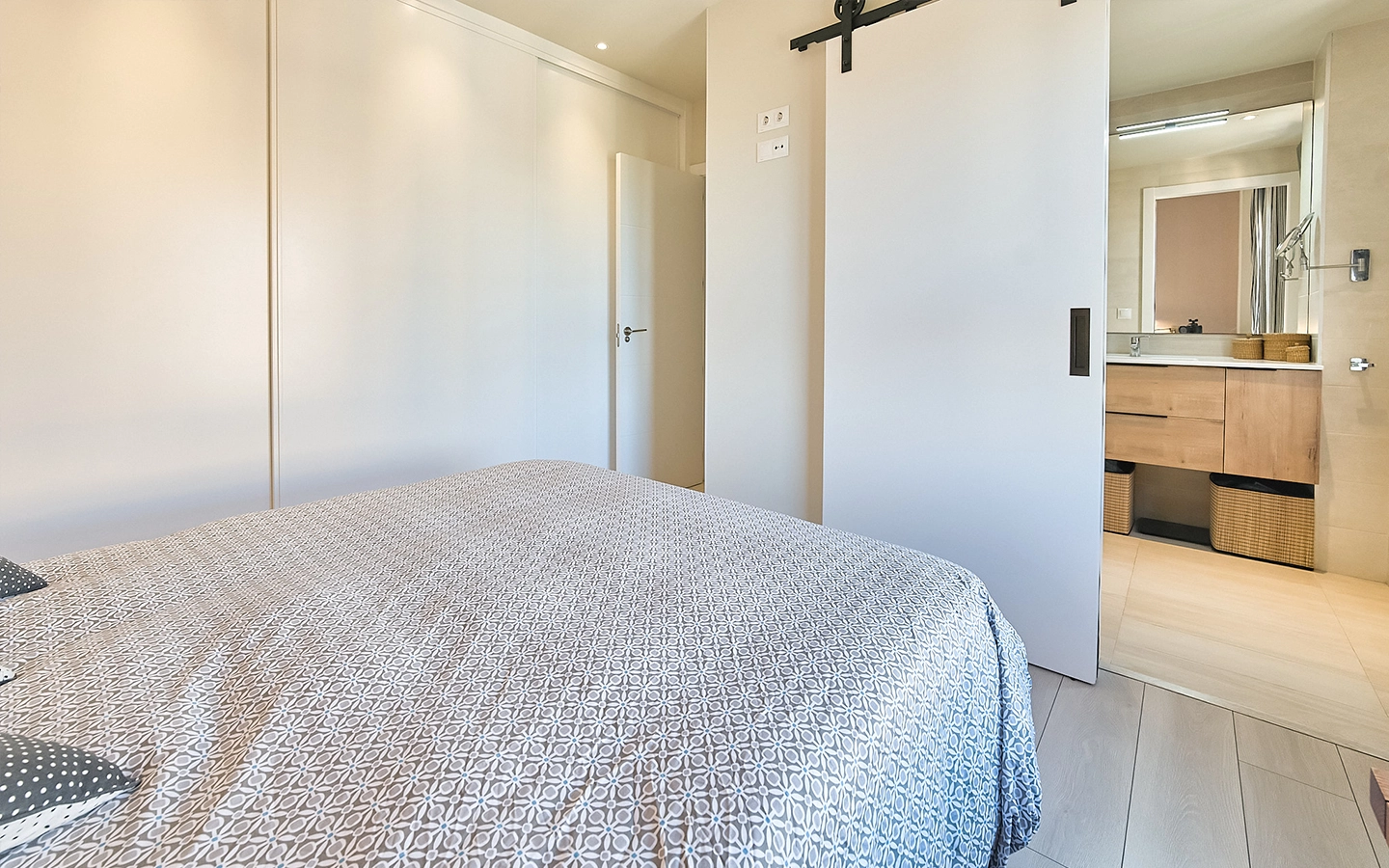 Спальные комнаты оформлены в нейтральной цветовой гамме, способствующей расслаблению и комфорту. Большие окна наполняют комнаты естественным светом и открывают виды на городской пейзаж. Встроенные шкафы обеспечивают достаточно места для хранения.