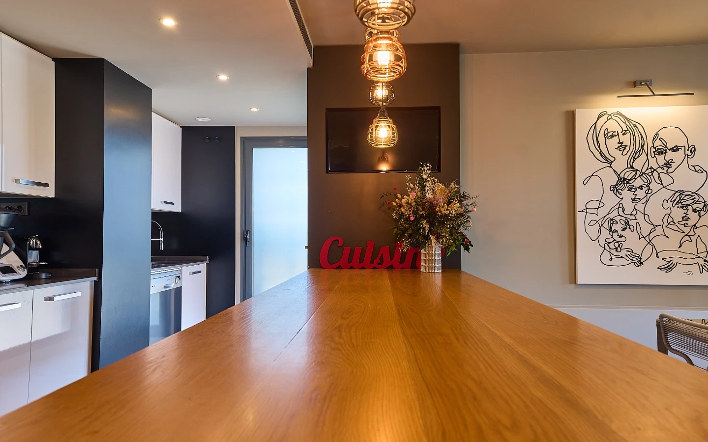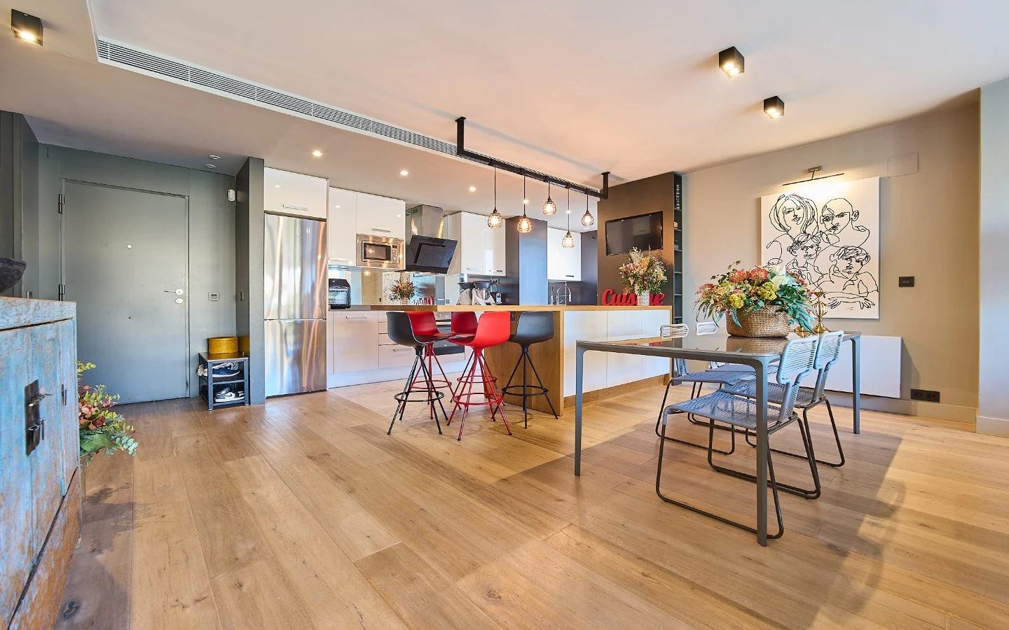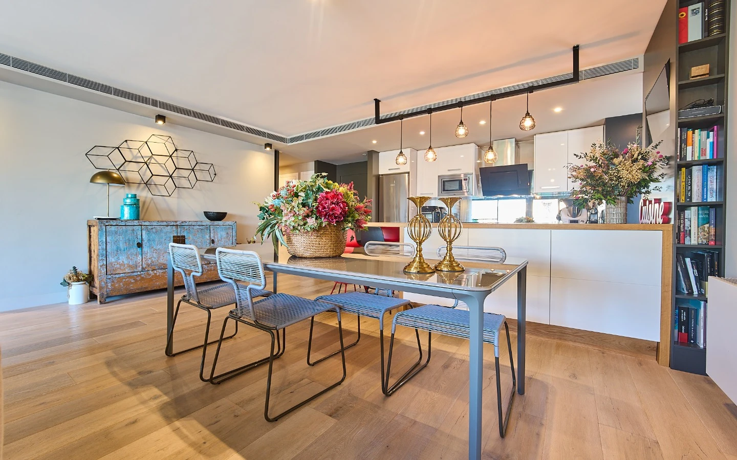 Просторная и уютная гостиная-столовая, с прямым выходом на террасу. Дубовый пол и изобилие естественного света создают теплую и утонченную атмосферу, идеальную как для повседневной жизни, так и для праздников с друзьями и семьей.