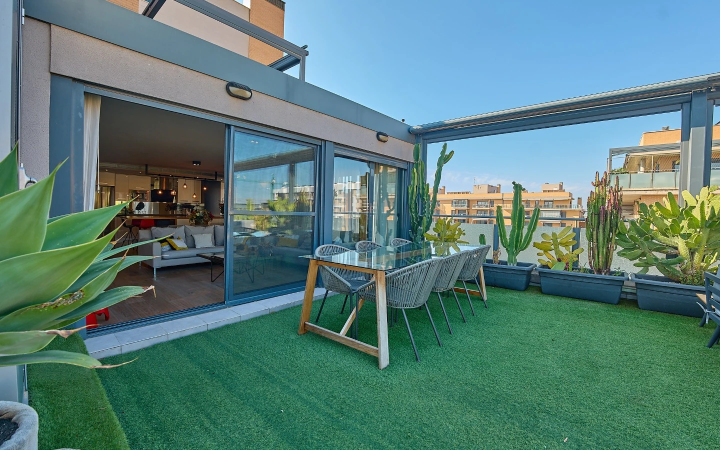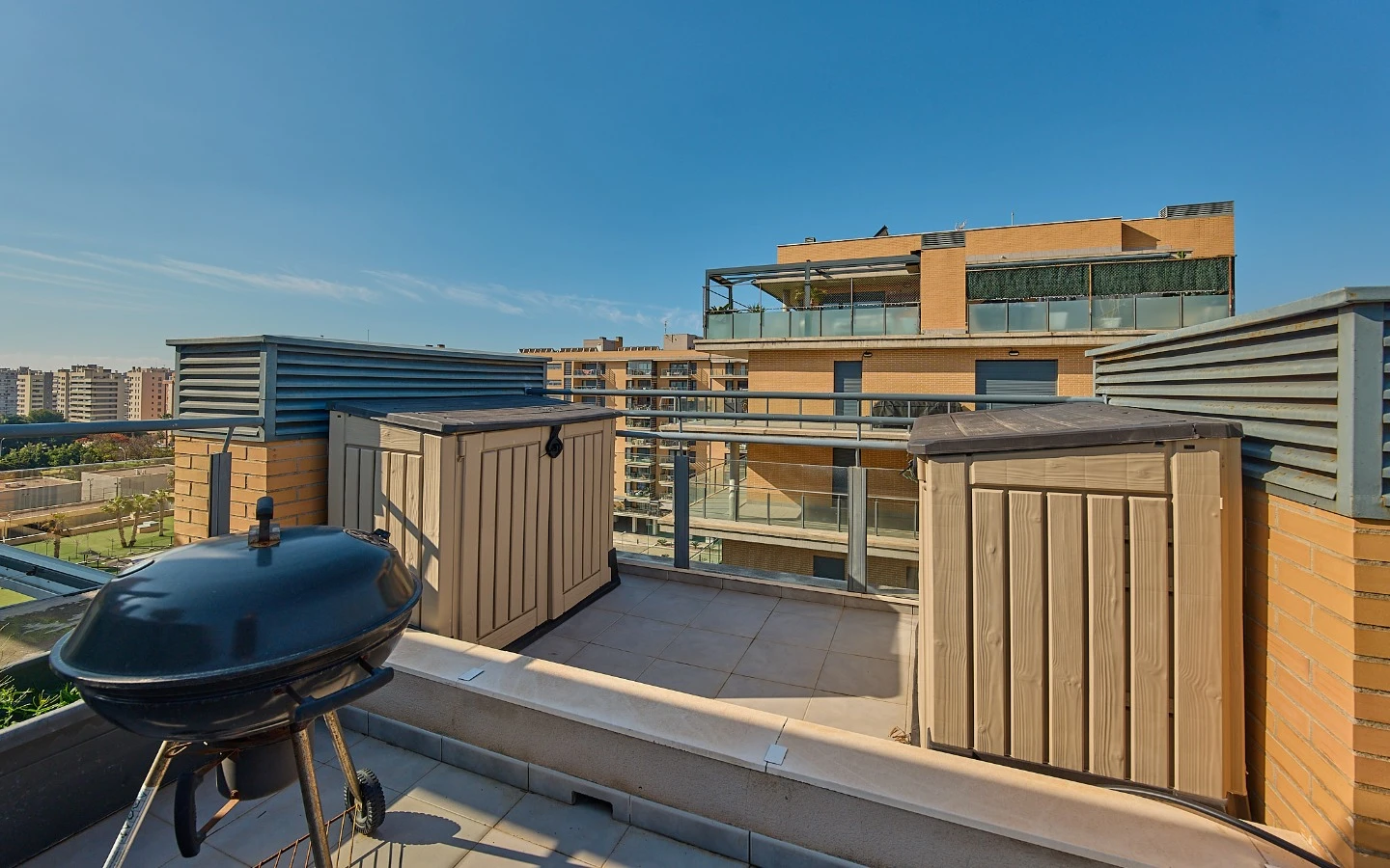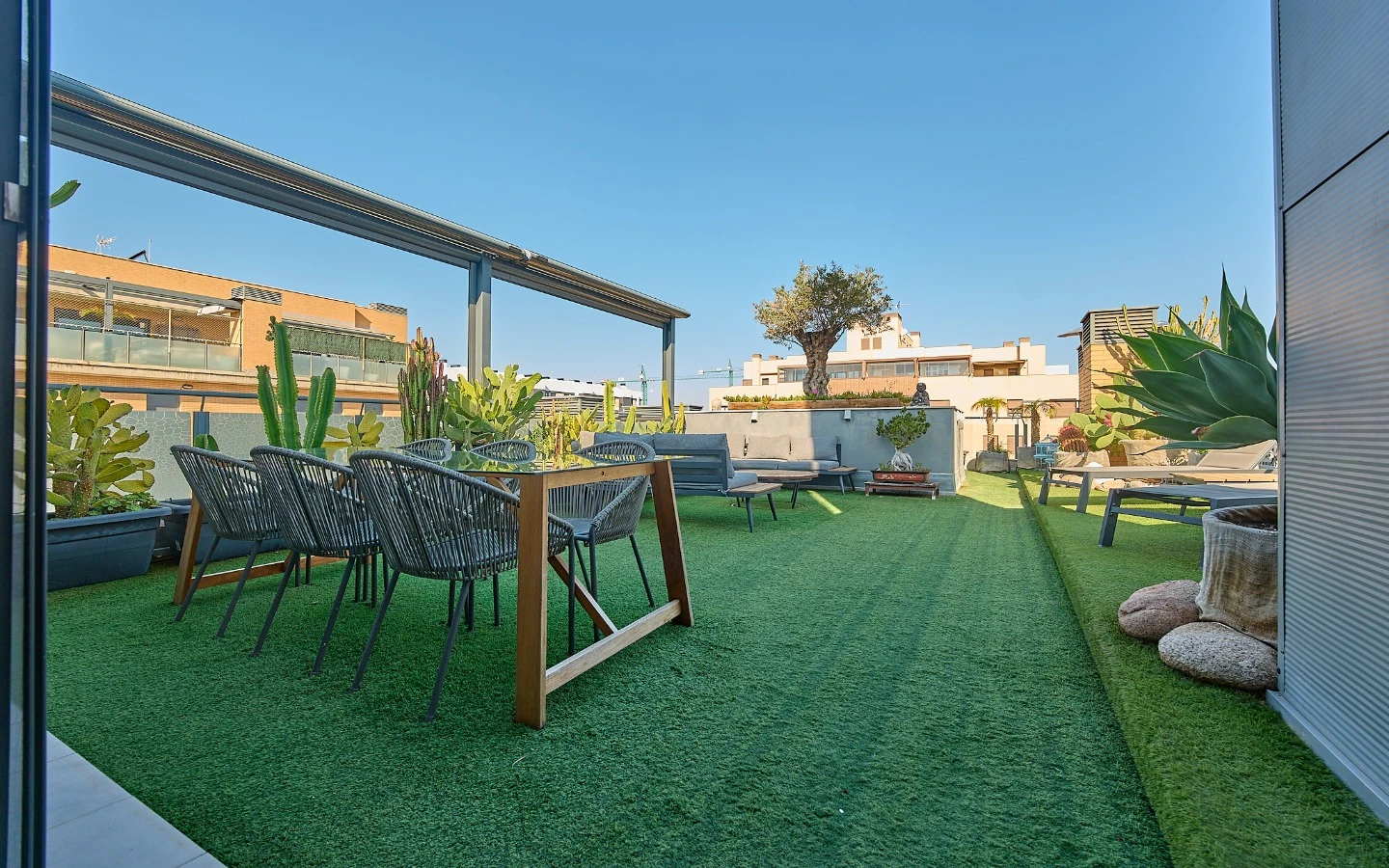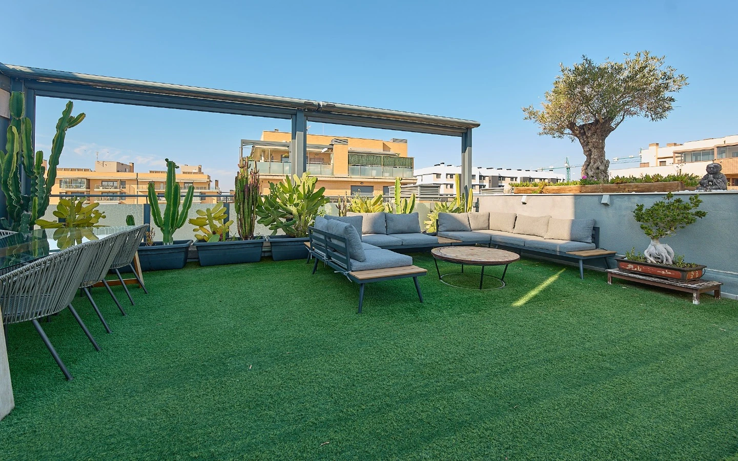 Панорамная терраса: городской оазис с открытыми видами, где можно организовывать барбекю, ужины на закате или просто расслабиться с бокалом вина, наслаждаясь панорамой Аликанте.