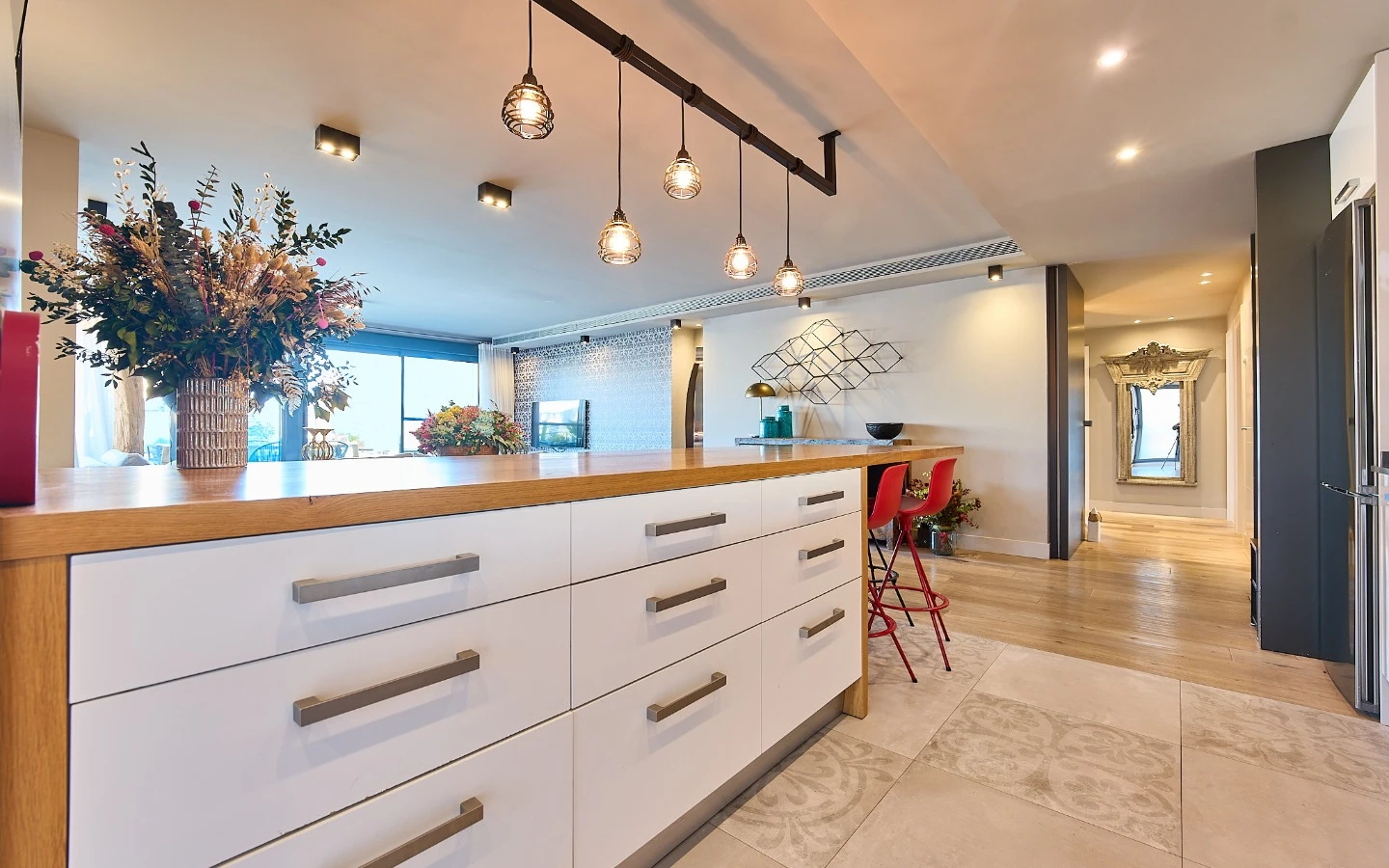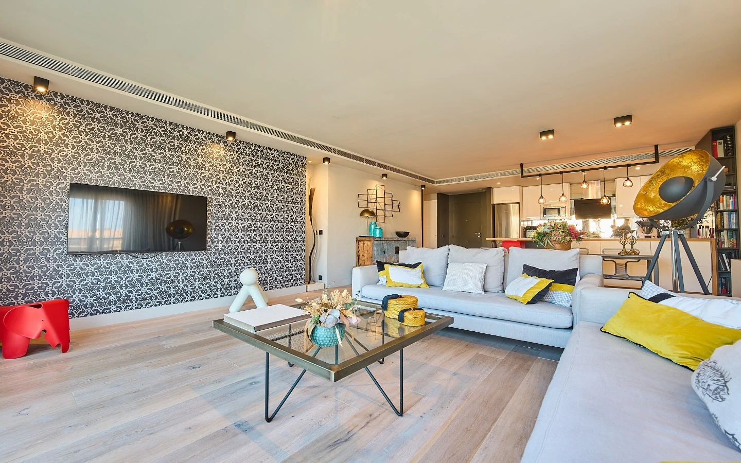 Войдя в этот впечатляющий пентхаус площадью 240 м², вы сразу будете очарованы естественным светом, который наполняет каждую деталь, благодаря панорамным окнам. Всё пространство излучает элегантность — от дубового пола до тщательно подобранных деталей в каждой комнате.