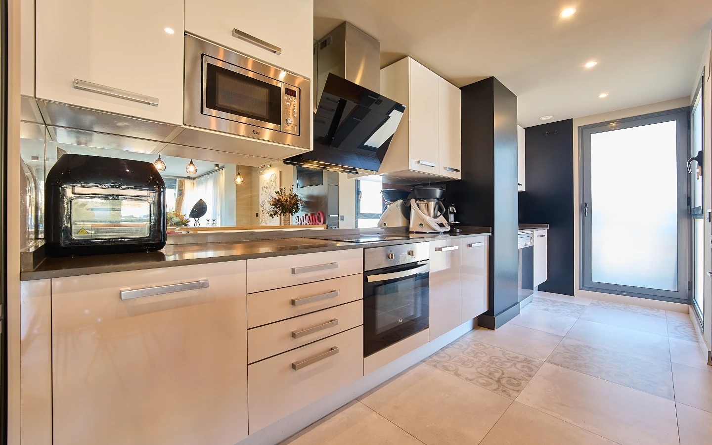 Кухня: современная, полностью оборудованная высококачественной техникой и с достаточным количеством места для хранения. Центральный остров и безупречные отделочные материалы превращают это пространство в сердце дома.