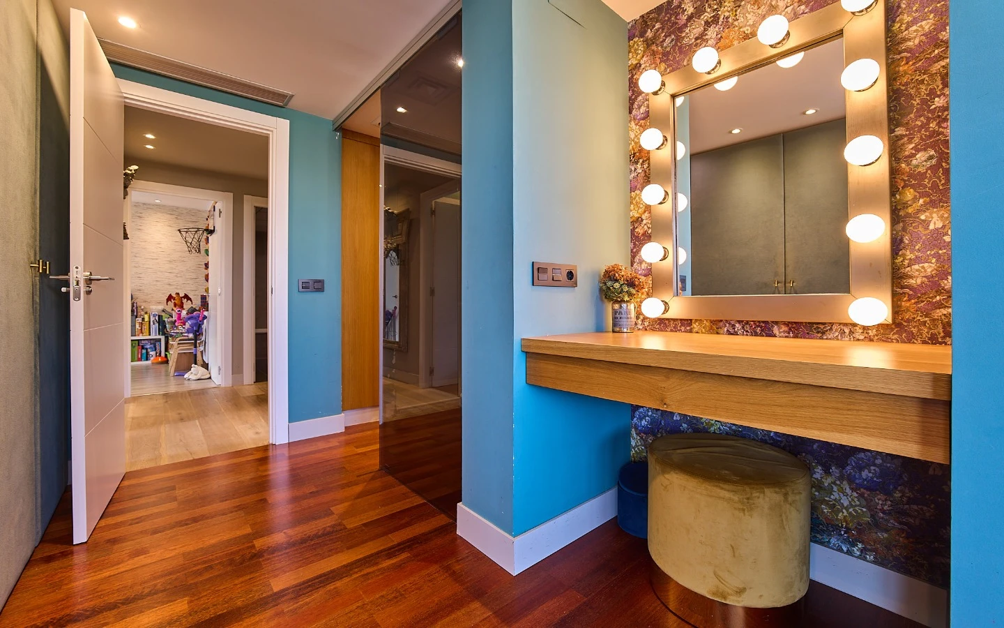 Главная спальня мечты: просторная, элегантная и наполненная светом. Имеет гардеробную с встроенными шкафами, современную собственную ванную комнату и очаровательное место для макияжа с подсвеченным зеркалом, идеально подходящее для начала дня с роскошью.