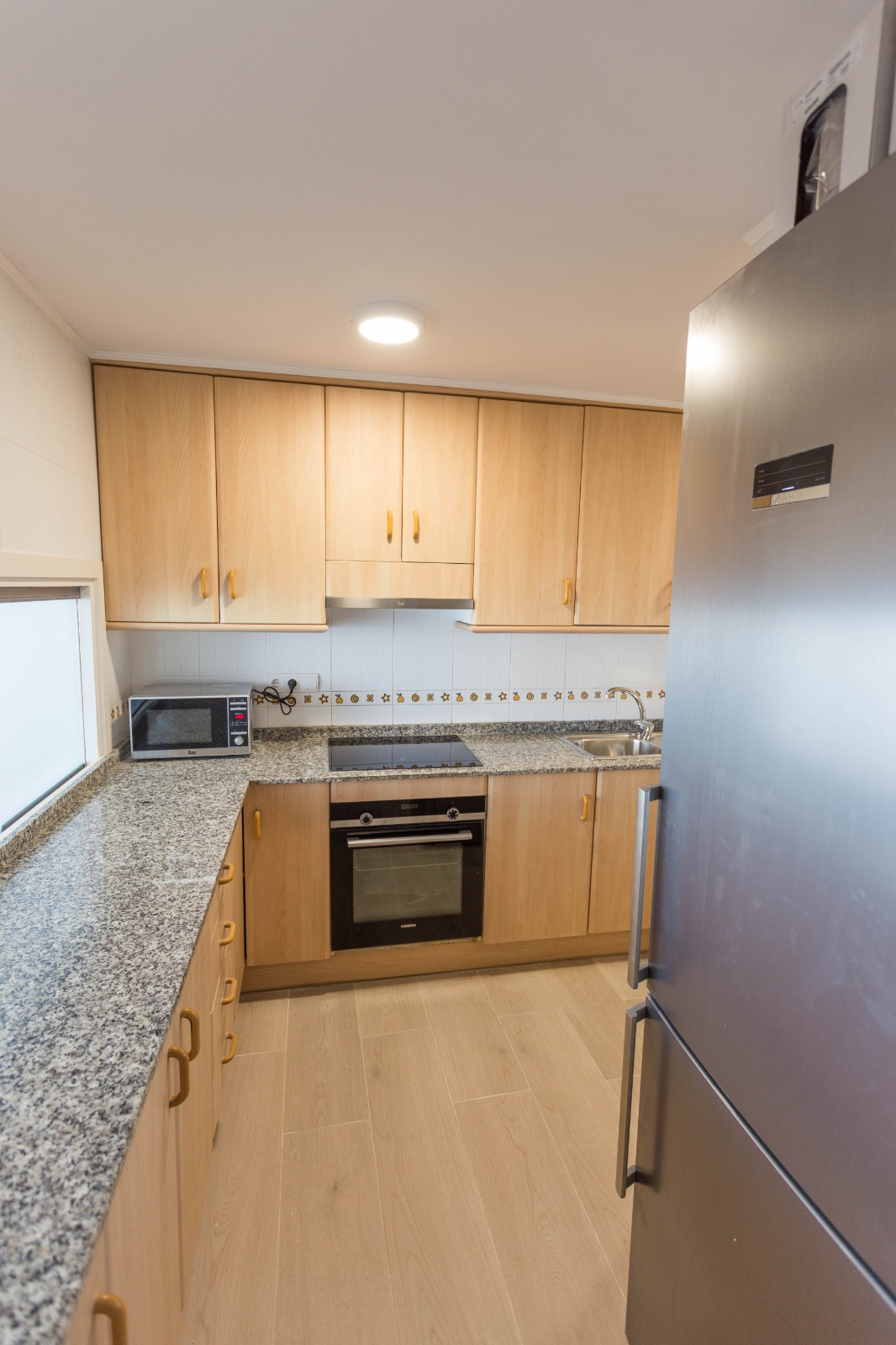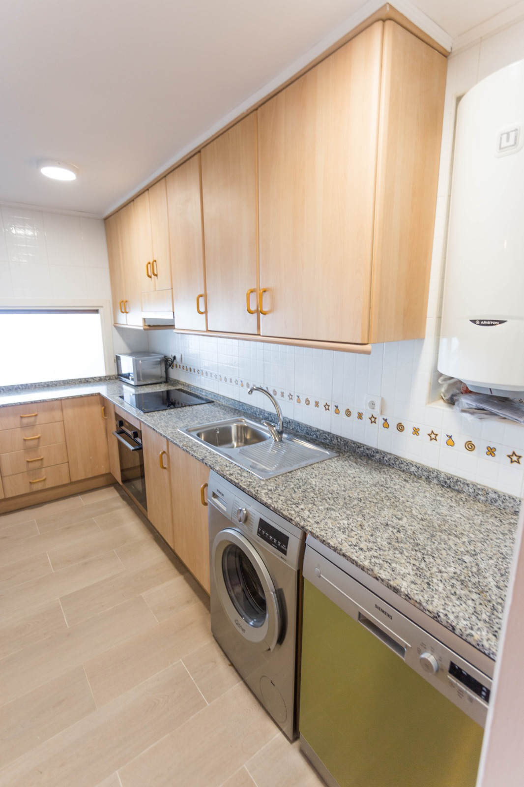 130 м² (118 м² полезной площади): 2 спальни с встроенными шкафами, 2 ванные комнаты, отдельная кухня с техникой и гостиная-столовая с выходом на балкон и застекленную террасу. Полы ламинат, окна ПВХ/Climalit, кондиционер, видеодомофон, кладовка, возможна покупка парковочного места.