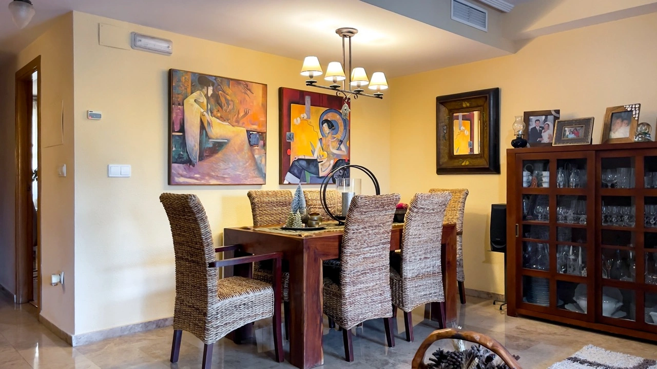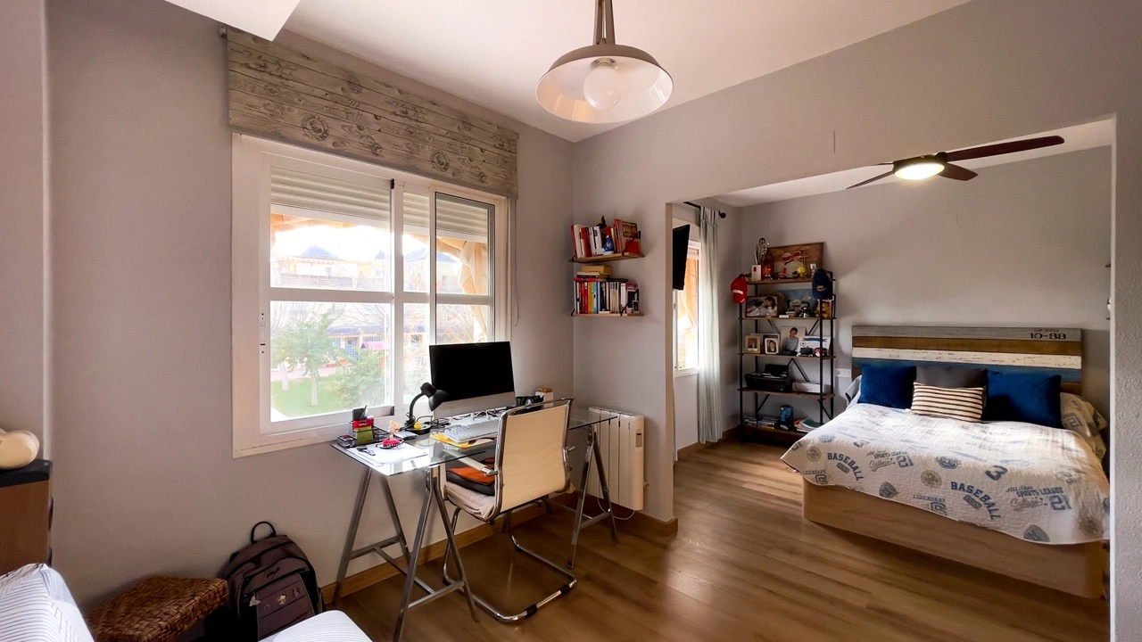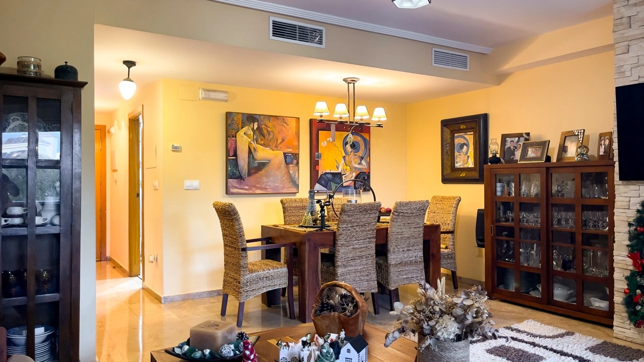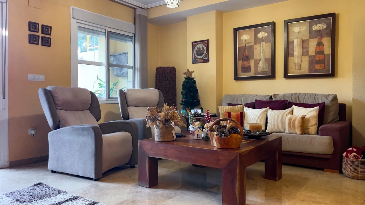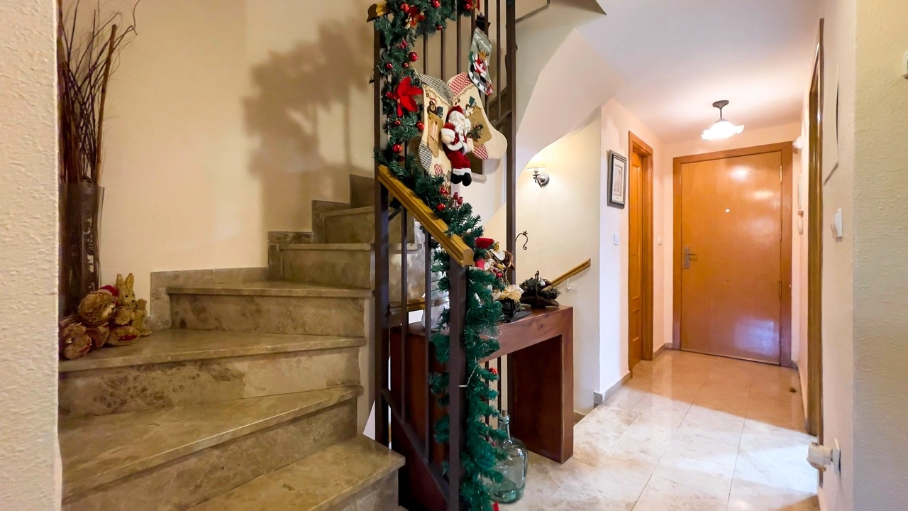 Этот просторный и ухоженный многоуровневый дом расположен в закрытой урбанизации, отличающейся спокойной атмосферой, порядком и высоким уровнем благоустройства. Уже при входе ощущается приватность и безопасность: общие зоны тщательно ухожены, а окружающее пространство украшено зелёными насаждениями. Урбанизация предлагает жителям общий бассейн, падел-корт, тренажёрный зал, спортивные площадки и детские зоны, что делает комплекс удобным и полноценным местом для повседневной жизни, особенно для семей, ценящих баланс между домом и инфраструктурой.
